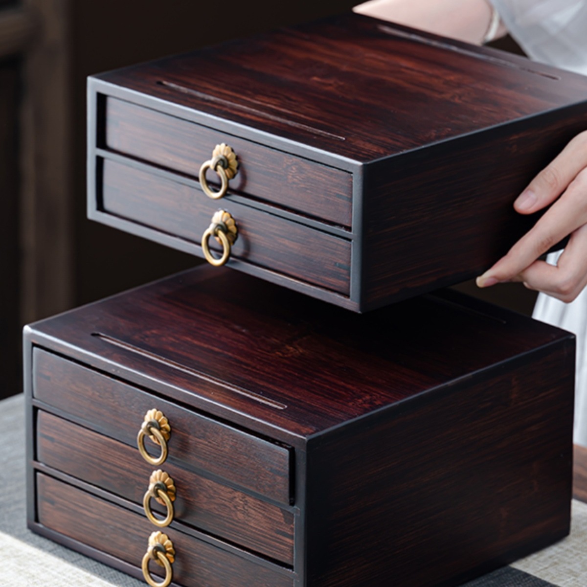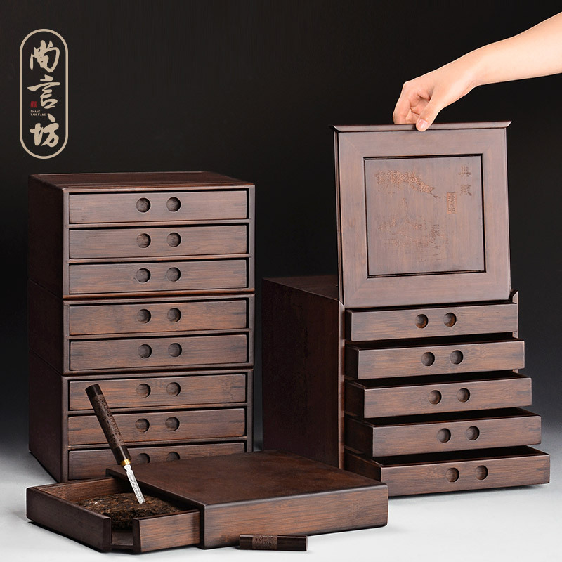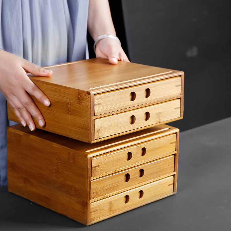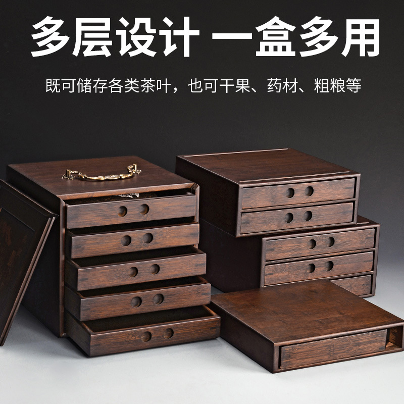 メーカー卸売り竹製多層プーアル茶箱大型汎用引き出し式収納茶葉茶餅容器箱