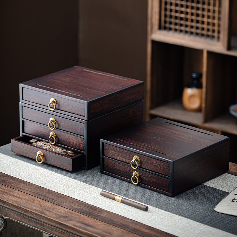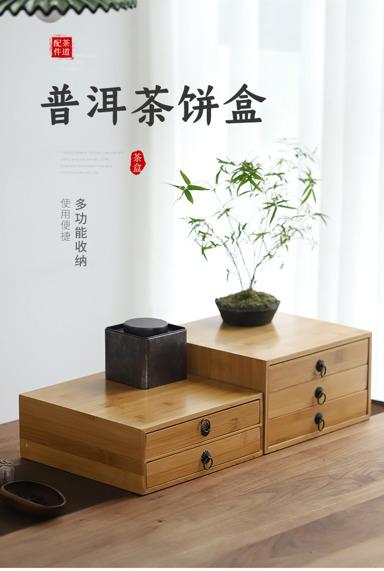 プーアル茶収納ボックス茶倉茶葉缶茶餅棚道具竹製引き出し式茶盤茶道部品
