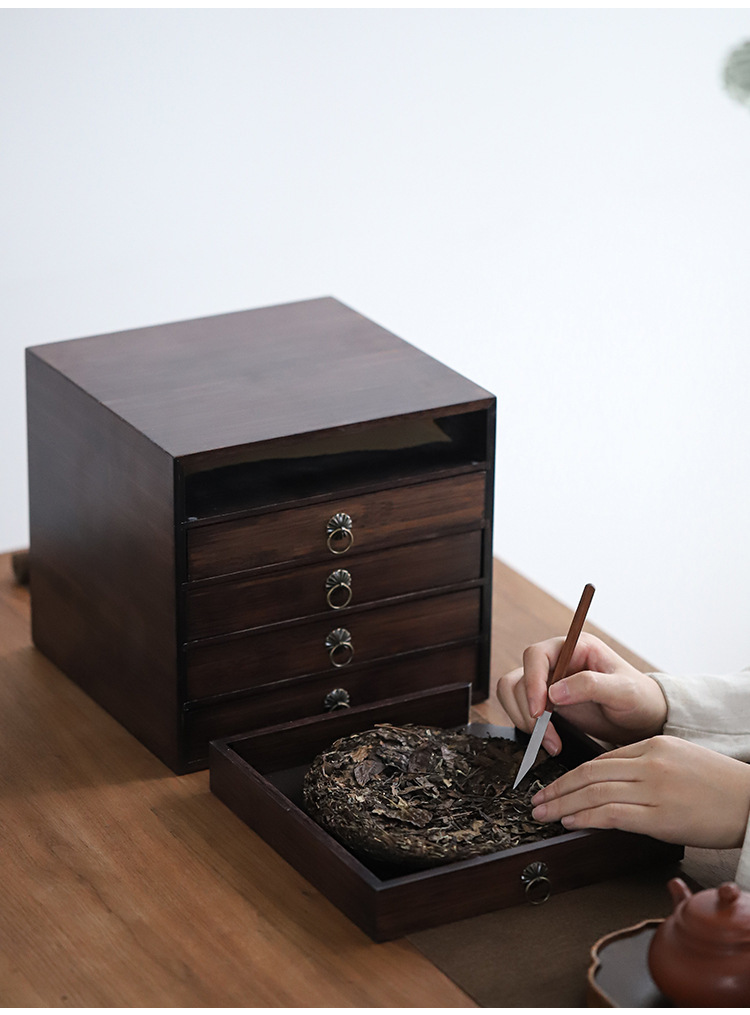 プーアル茶収納ケース分茶盤家庭用白茶餅茶箱多層実木竹製引き出しプーアル棚