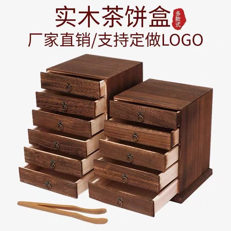 プーアル茶箱 無垢材茶ケーキ箱 包装 ギフトボックス 茶箱 引き出し式 多層茶トレイ 茶ケーキ箱 茶ケーキキャビネット