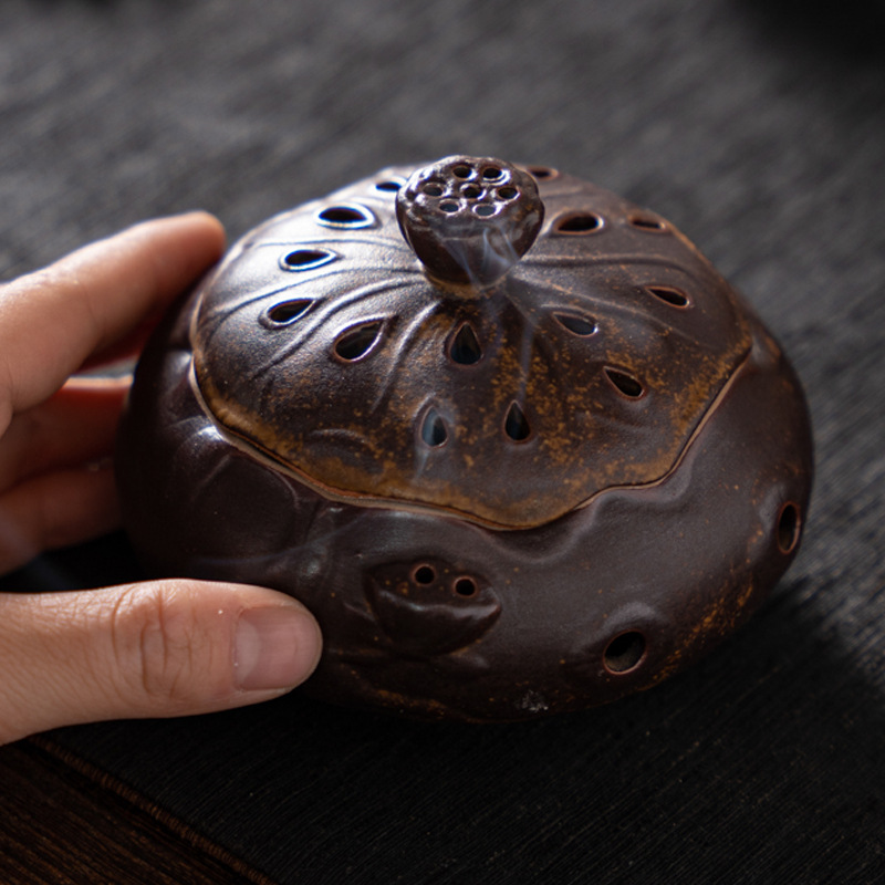 蓮蓬盤香炉香薫炉家庭用室内中国式茶道置物禅意復古檀香創意陶磁器沈香