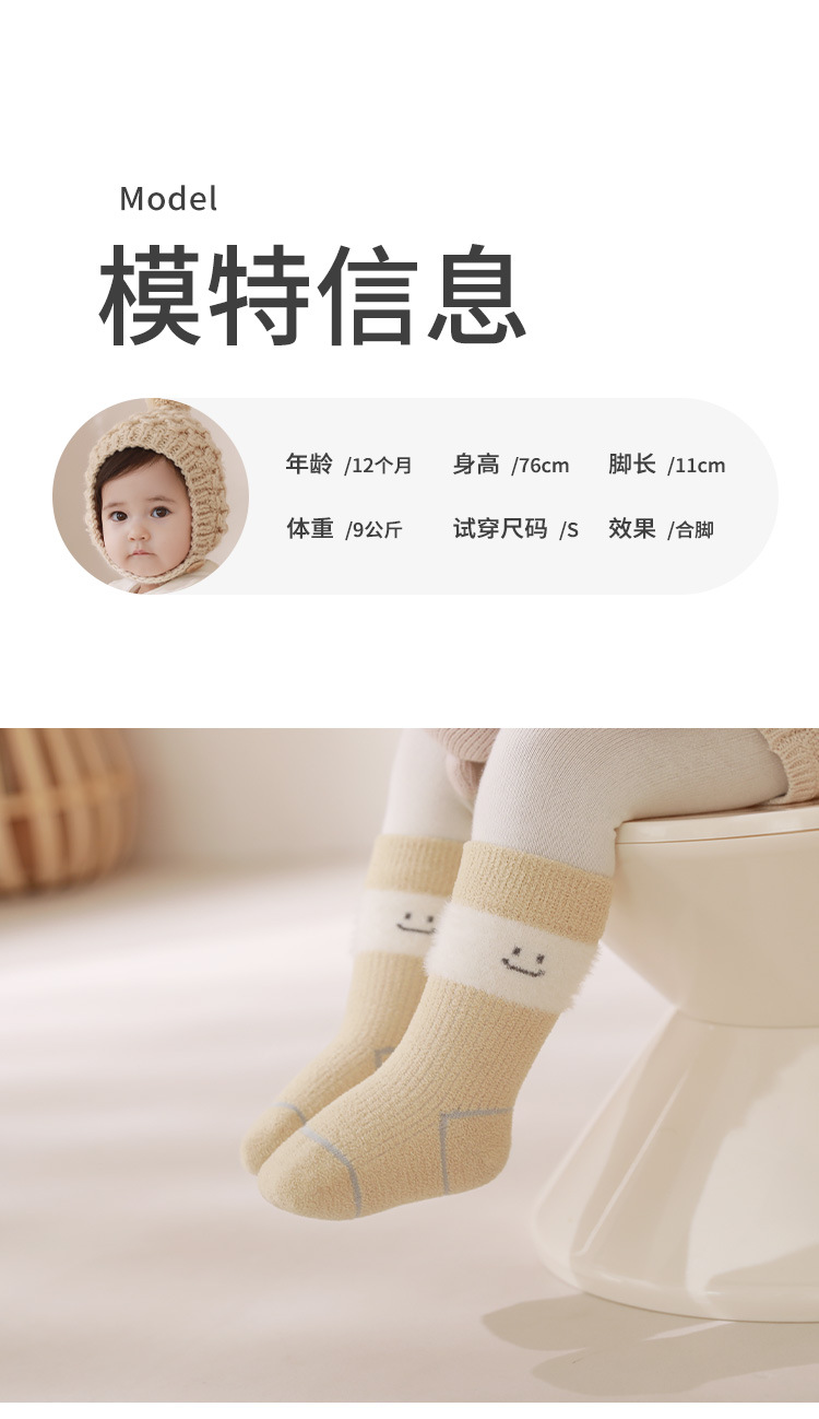 ベビー靴下秋冬厚いベルベット保温新生児赤ちゃん靴下松口無骨男女児童中筒靴下