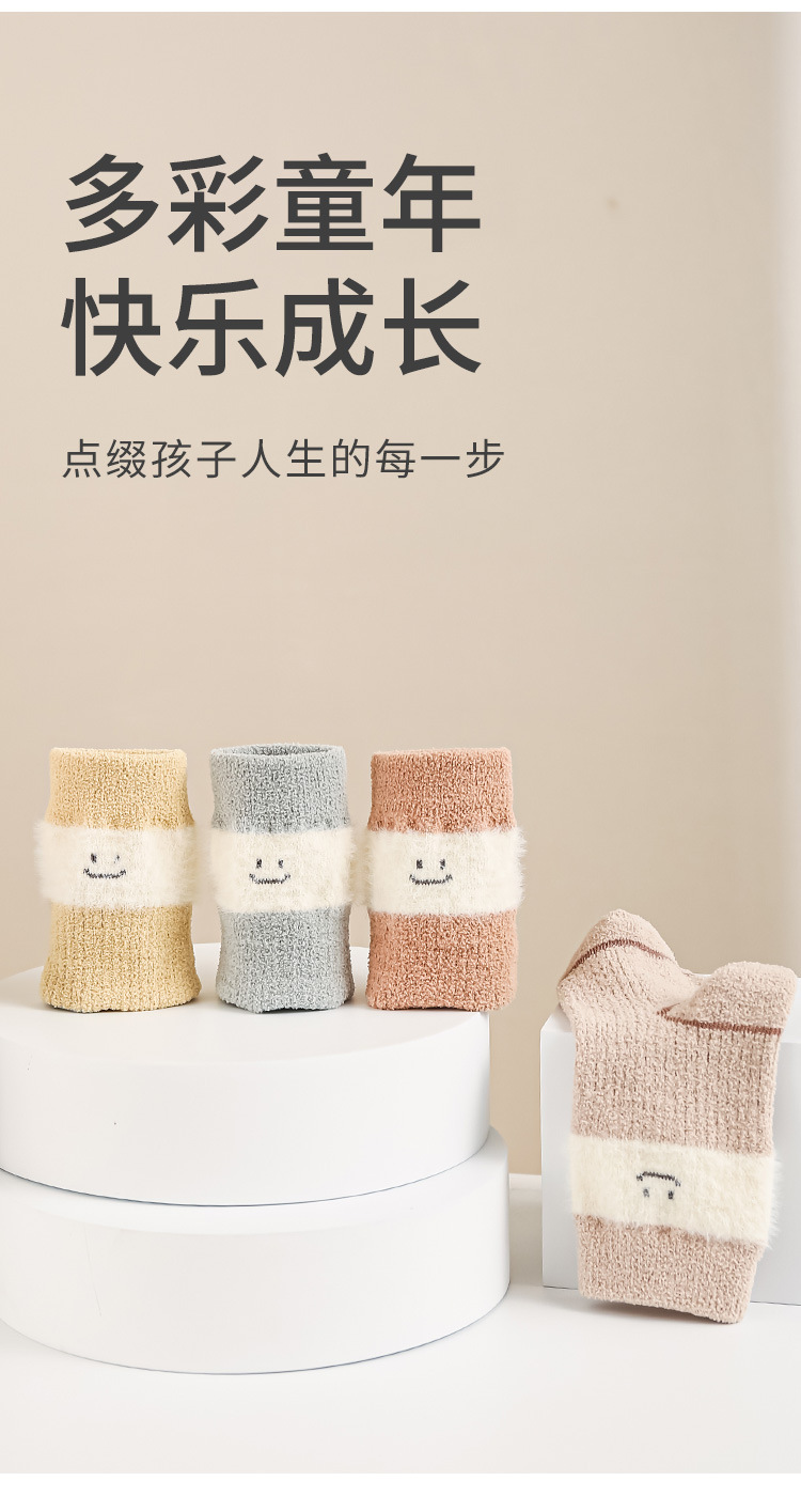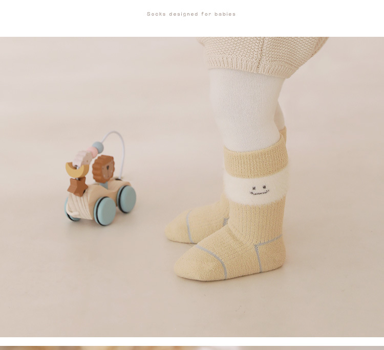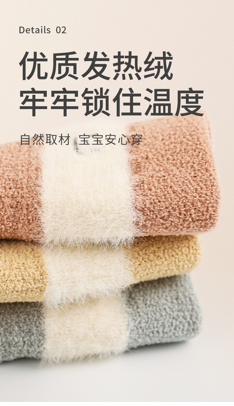 2024冬の新商品の赤ちゃん靴下にベルベットをつけて保温赤ちゃん靴下の純色の男女児童ミンクの中筒靴下を厚くする