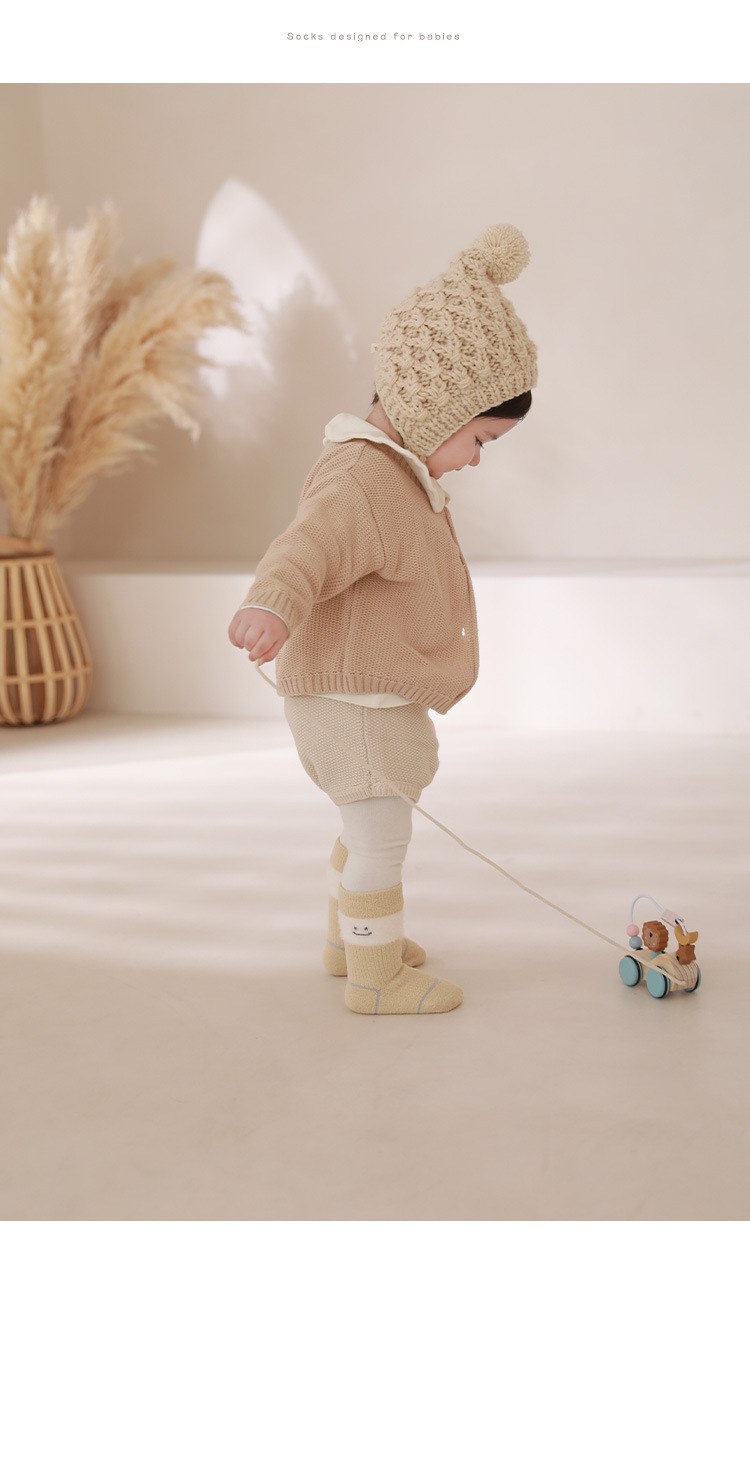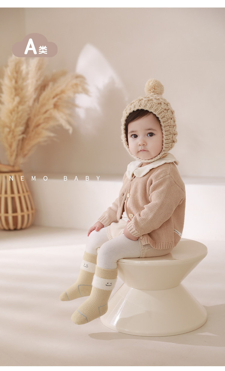 新入生の赤ちゃんの靴下は秋冬に毛輪を厚くして保温します。
