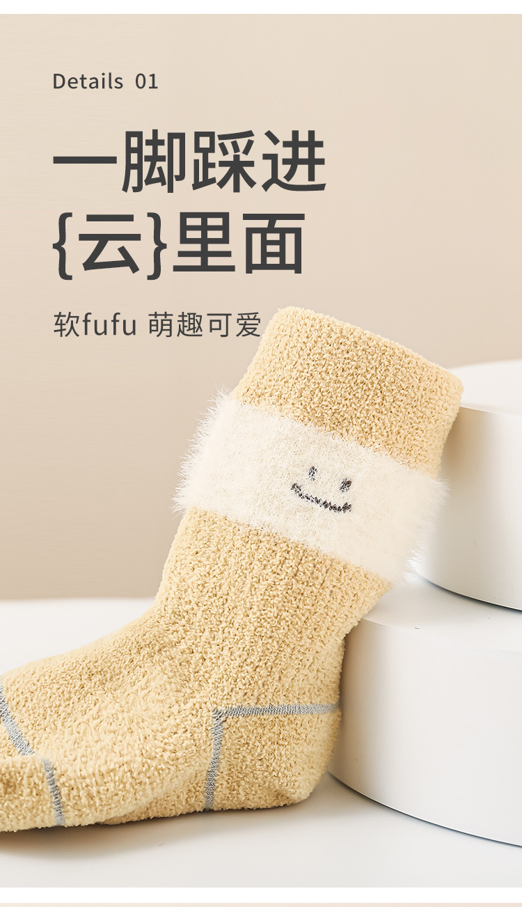 宝宝袜子秋冬加厚加绒立体卡通无骨松口婴儿男女童中筒婴儿袜子