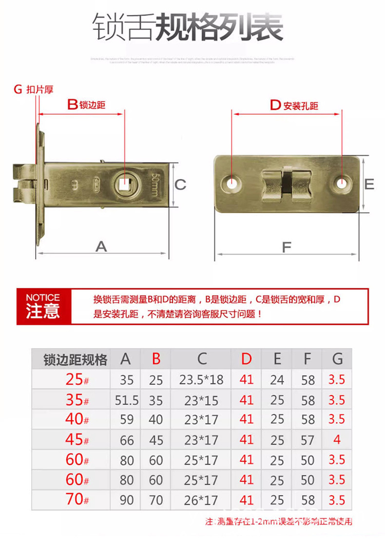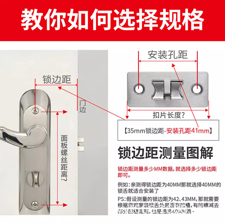 卫生间锁舌门锁芯舌木门厕所浴室卧室通用型配件锁心锁舌头室内