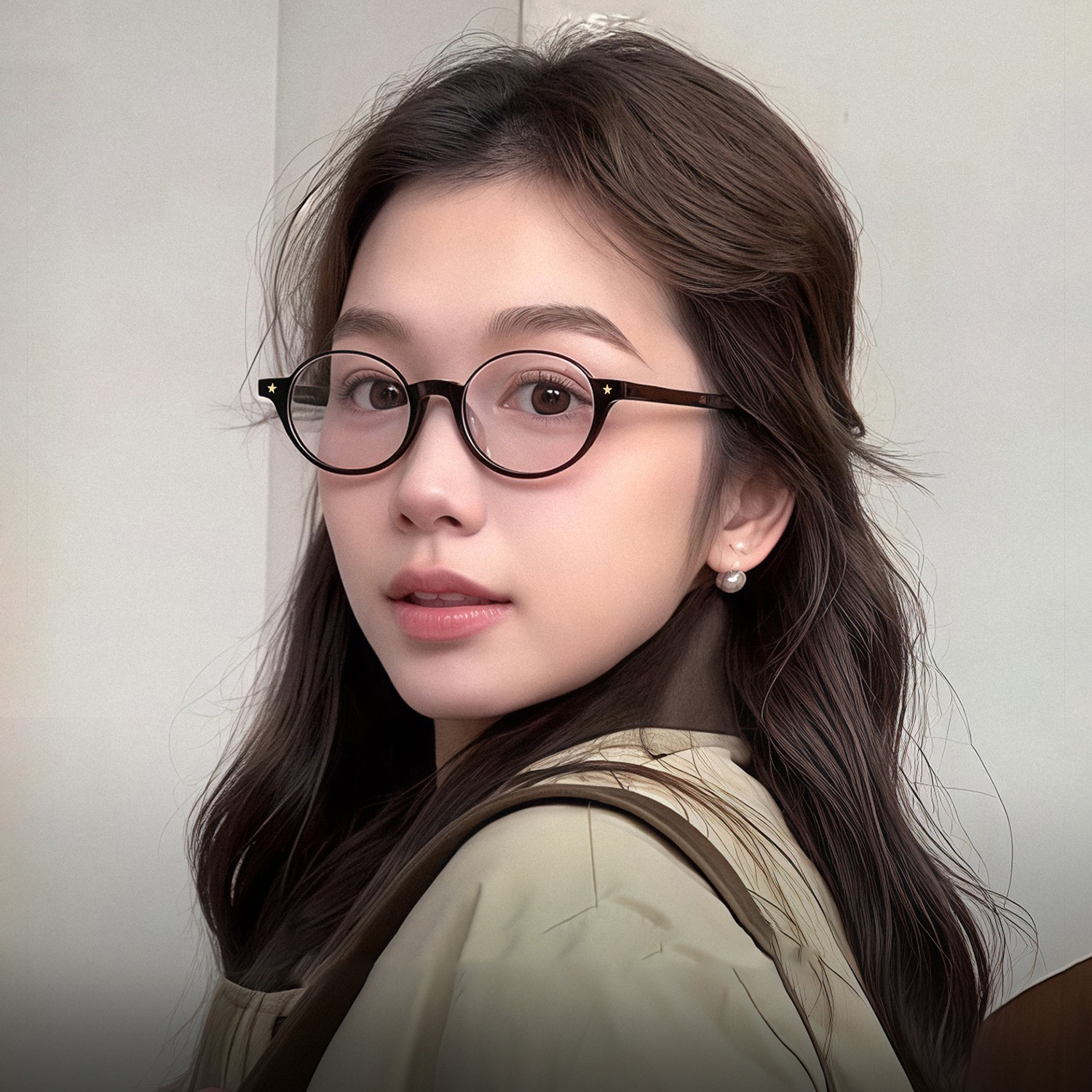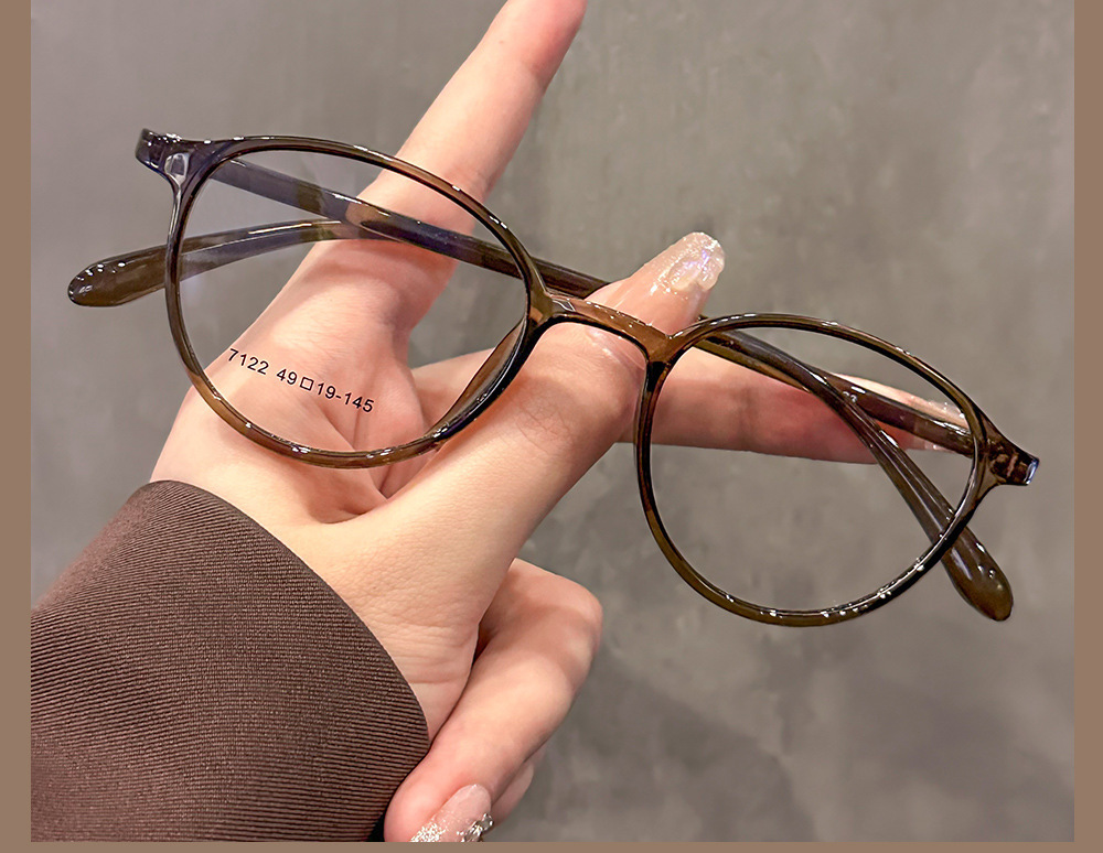 高级冷茶色超軽量メガネフレーム女性小颜丸い颜近视メガネ素颜フィット度数フラット光メガネフレーム