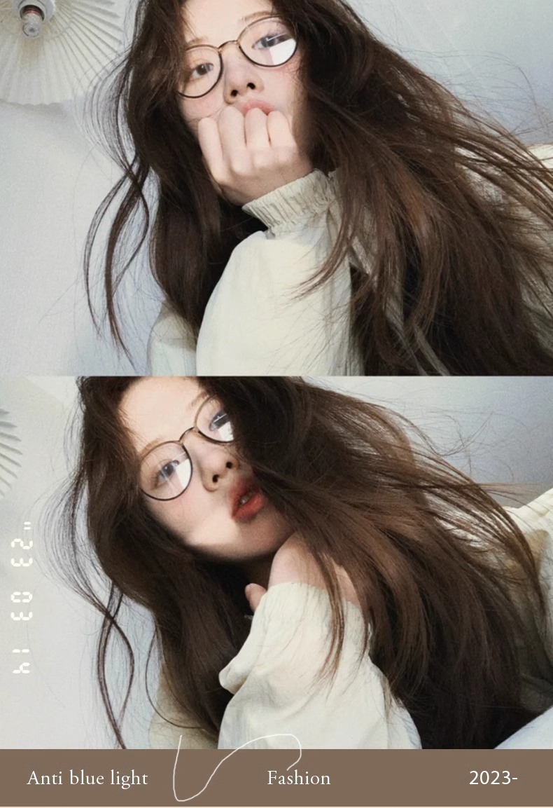 レトロ風スモールフレームブルーライトカットメガネフレーム女性用ノーメイク近視メガネ女性用度あり卸売超軽量メガネフレーム