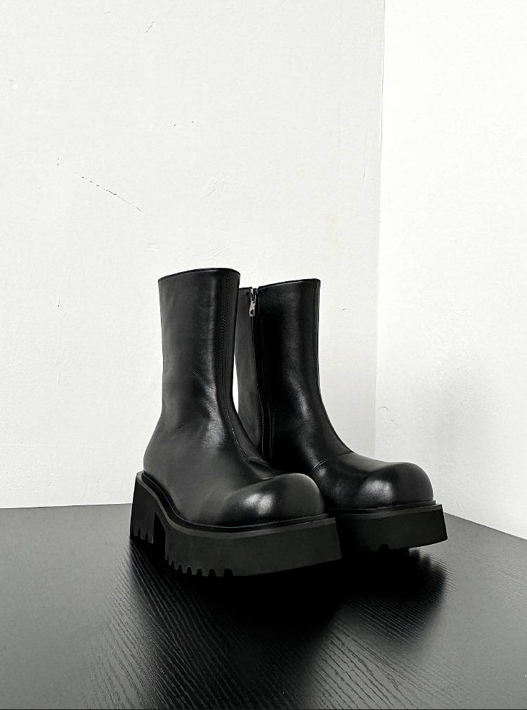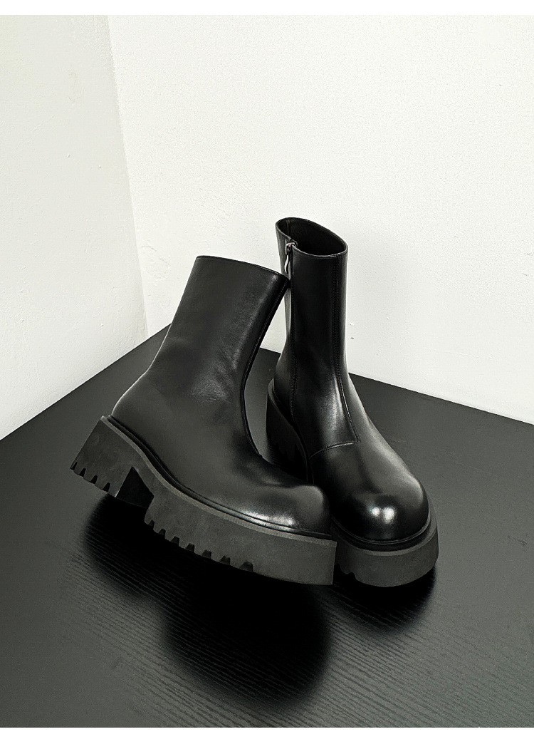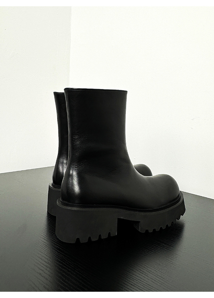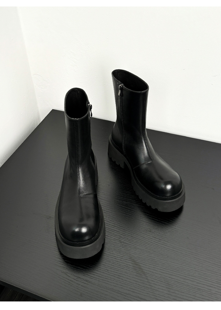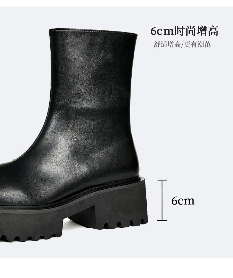 新しい厚い底のマーティンの靴の男性は6cmの内外の全皮の黒色の丸い頭の側のファスナーのショートブーツを増加します。