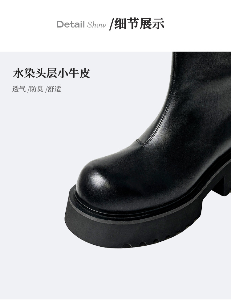 秋冬の新作の厚い底のチェルシーの靴の男性は本革の短い筒の黒色の丸いショートブーツの英倫風を高めます。