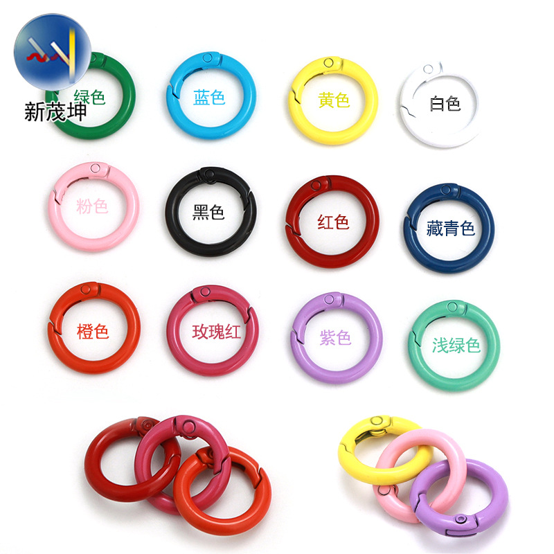 彩色烤漆锌合金弹簧扣圆形开口弹簧圈diy手工钥匙扣饰品配件批发