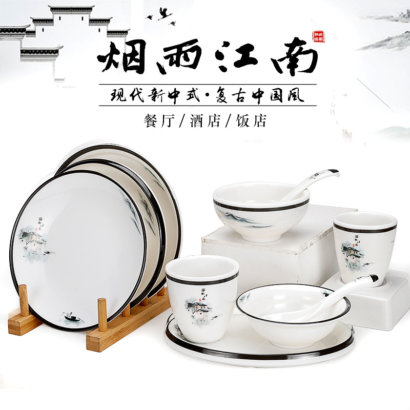 Yanyu Jiangnan A5 メラミンテーブル食器業務用鍋プロフェッショナル 4 点セットホテルレストランボウルスプーンディッシュカップセット