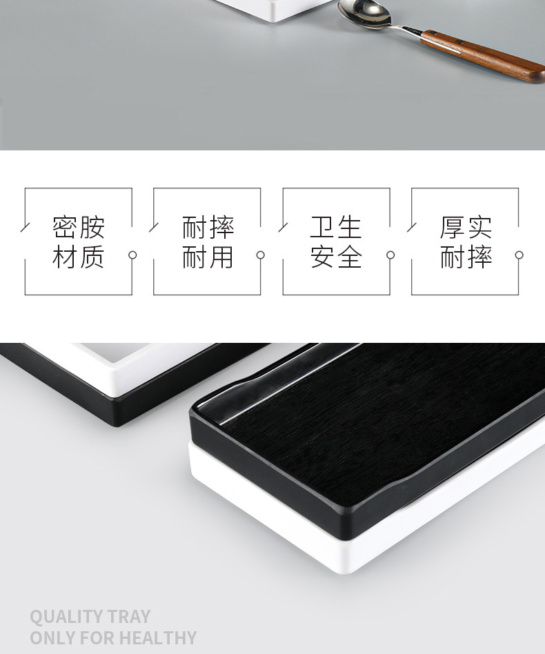 トレーの長方形のプラスチックのメラミンホテルの客室のコップのお茶の皿の洗面用品の収納盤のレストランの業務用