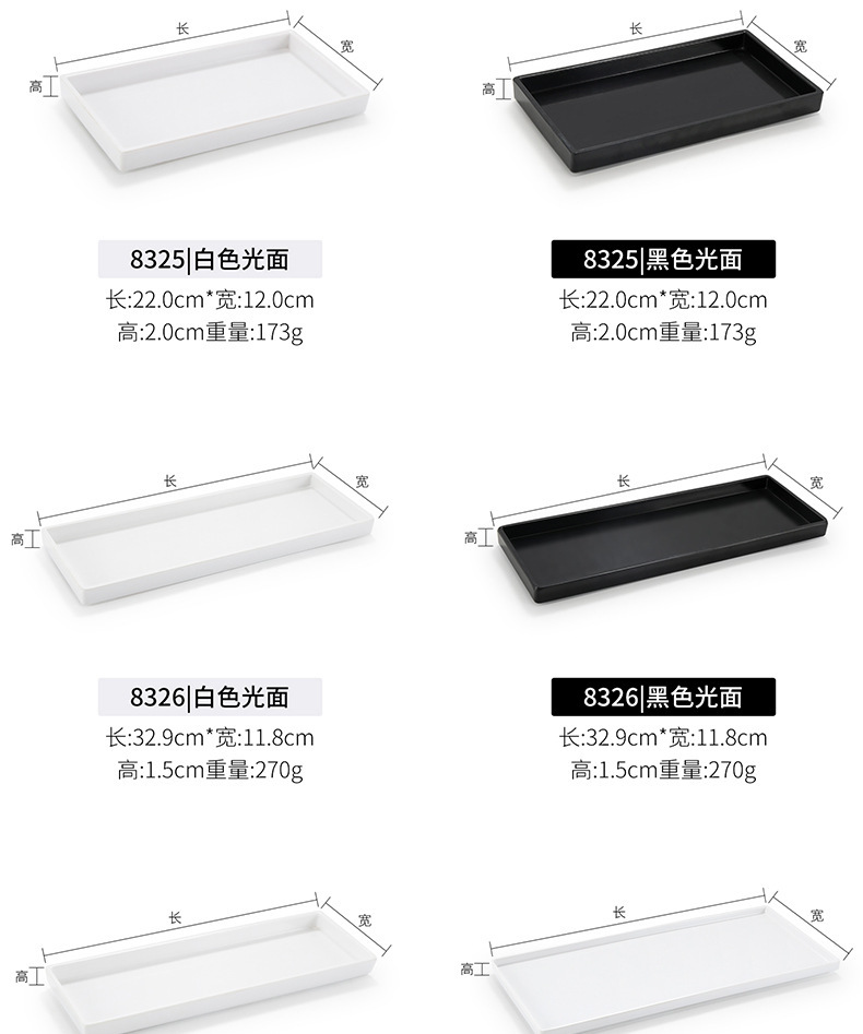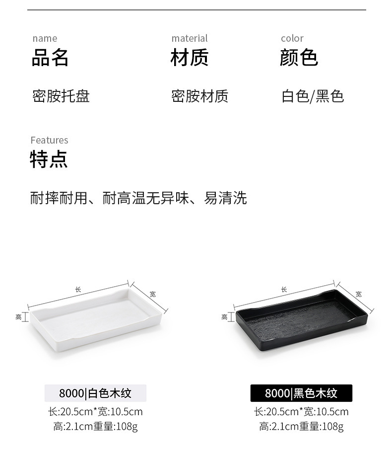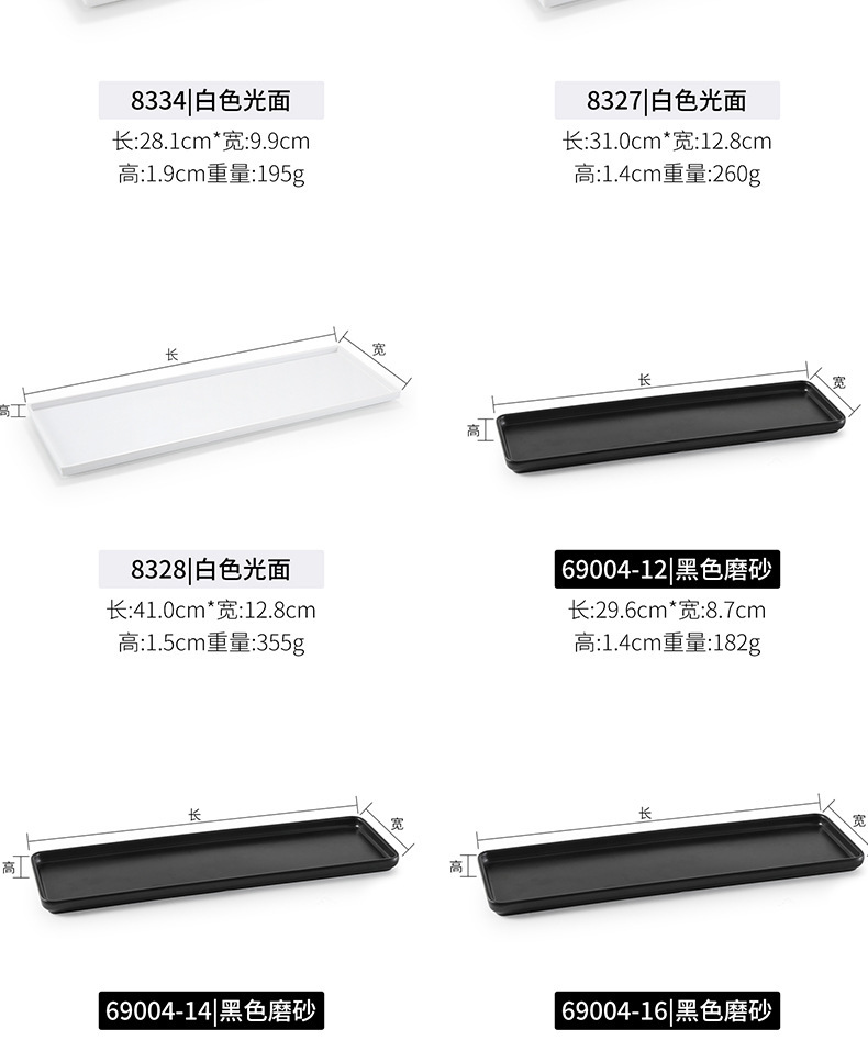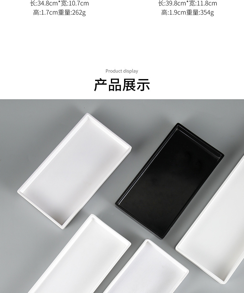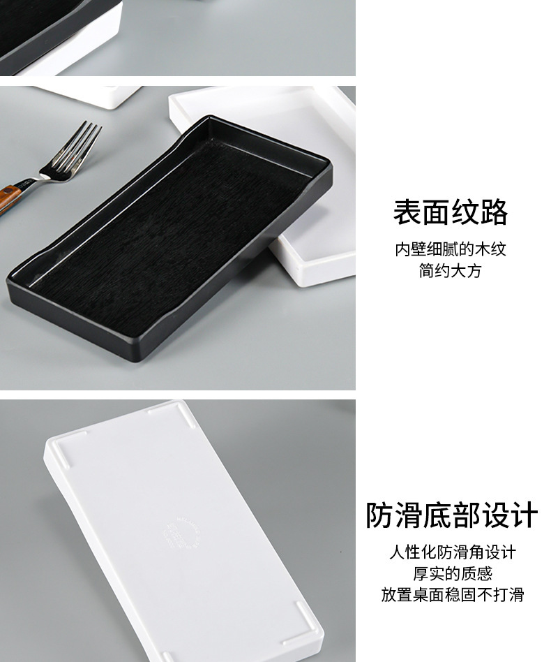 メラミン浅皿平皿日本式の狭い長さのプラスチックトレー長方形寿司焼肉焼きそば業務用