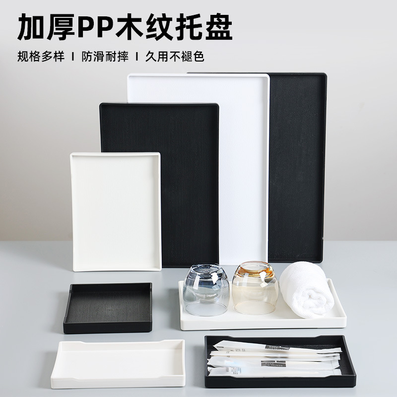 プラスチックトレー長方形ホテル客室北欧茶盤水杯トレー洗面用品収納盤業務用