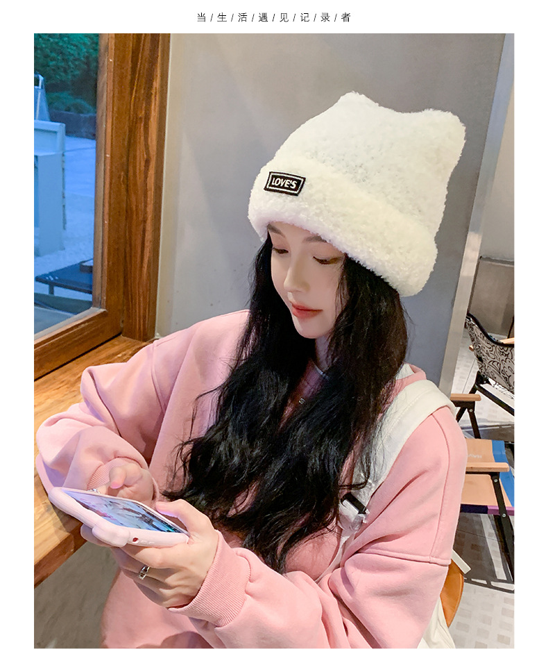 冬季帽子女款保暖加厚护耳帽可爱甜美猫耳朵针织帽时尚百搭毛线帽