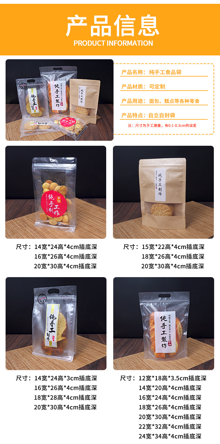 工場直売純手作りフロスト透明自封袋焙煎間食密封袋食品級袋手提げ袋
