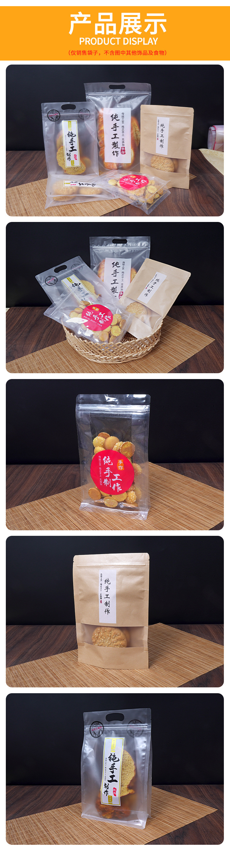 純粋な手作り包装袋ポテトチップス包装自封袋辛いビスケットゼロ食品袋透明密封袋