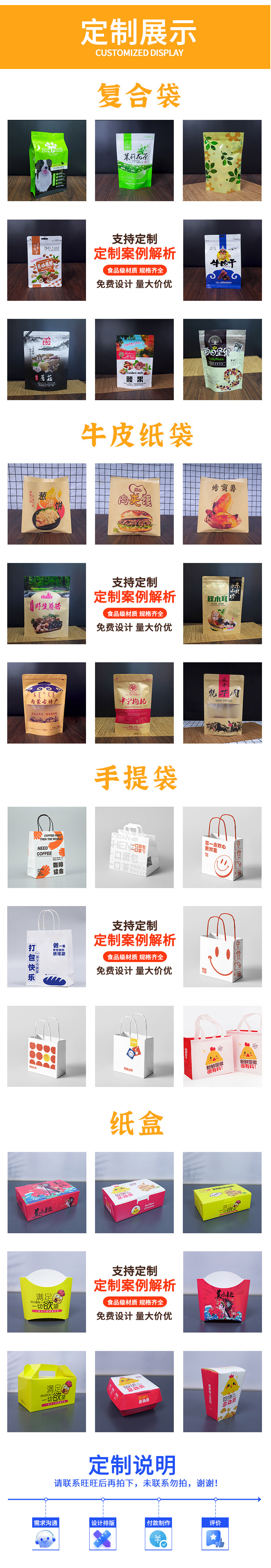 黄金の歯切れ焼き紙袋でんぷん腸防油クラフト紙包装焼きそば牛革防油紙はカスタマイズ可能です