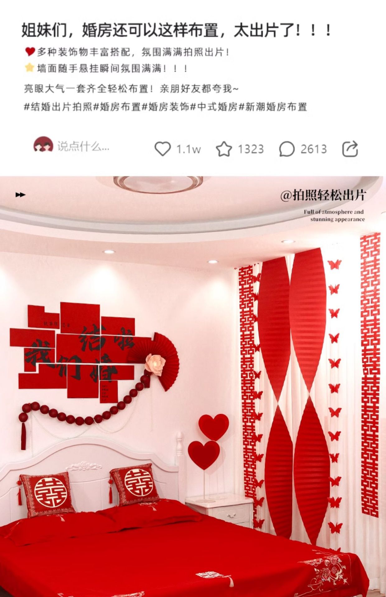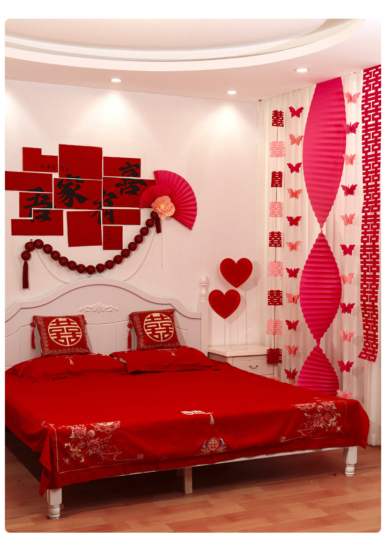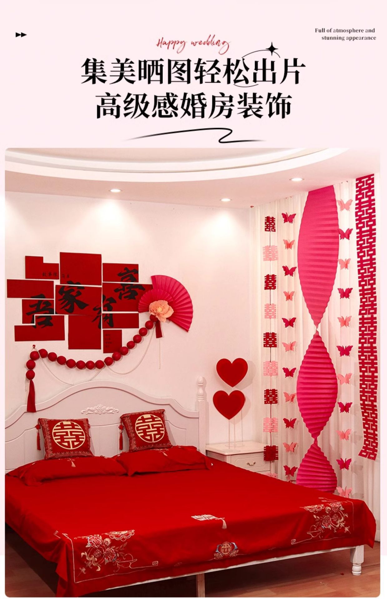 婚房布置套装女方房间背景墙面装饰结婚男方新房客厅卧室拉花喜字