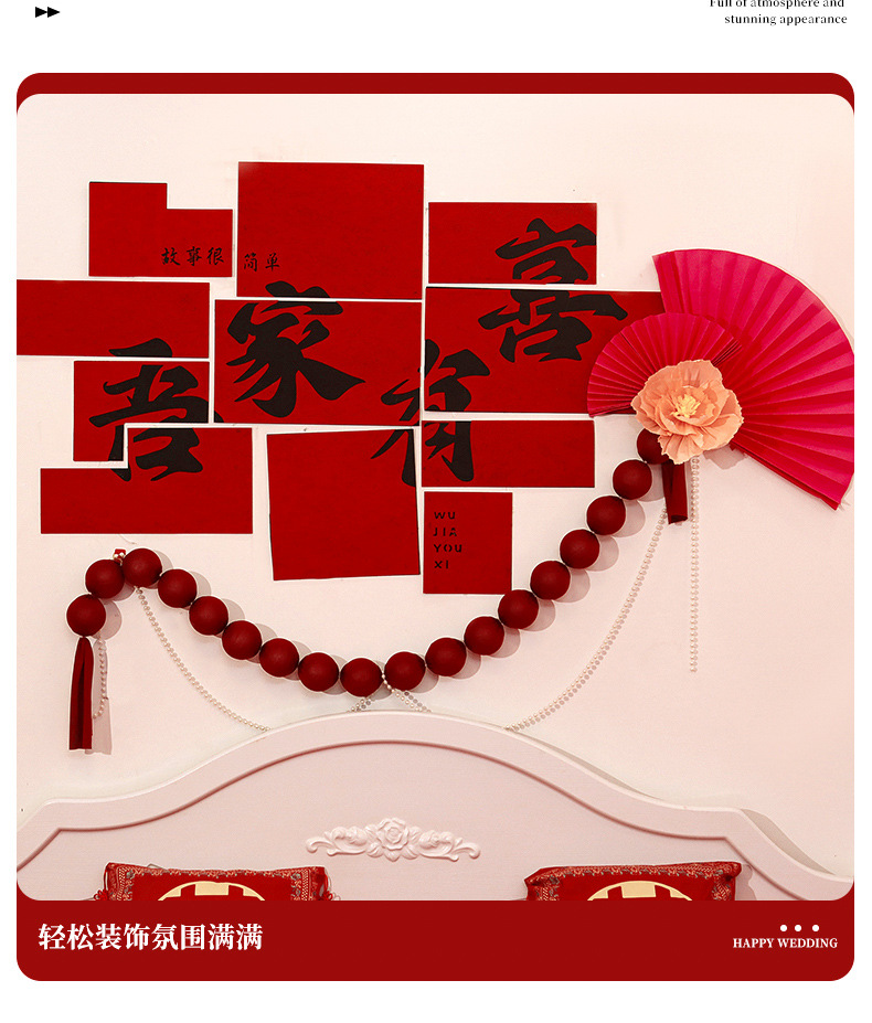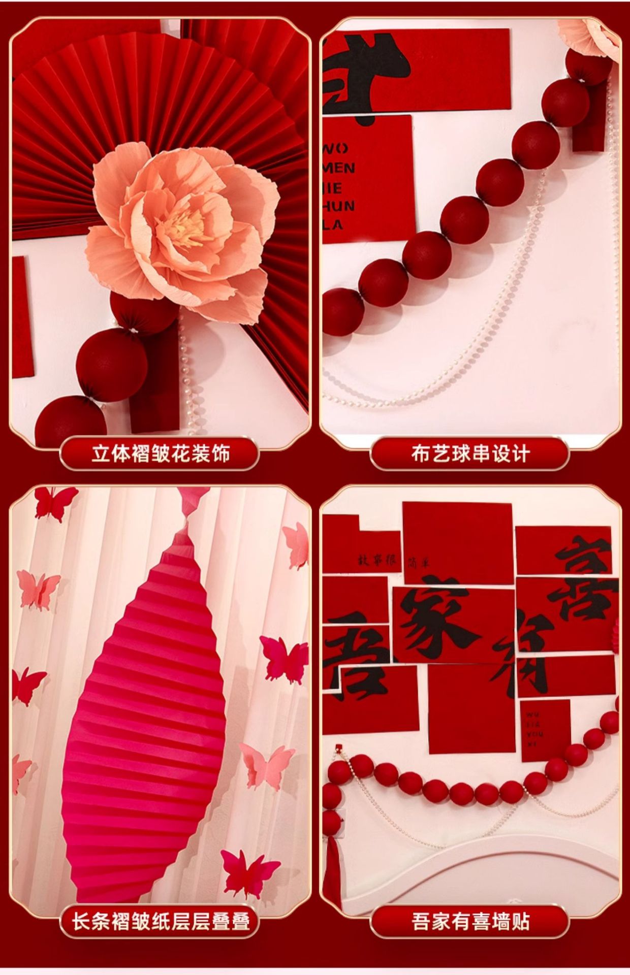 婚房氛围感布置结婚套装拉花装饰婚礼背景墙喜字kt板女方客厅墙面