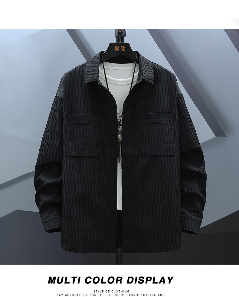 8XLファッションブランドの大きいサイズのシャツ春と秋の長袖の青少年のゆったりしたファッションのシャツの男性の襟のボタンの上着の男性