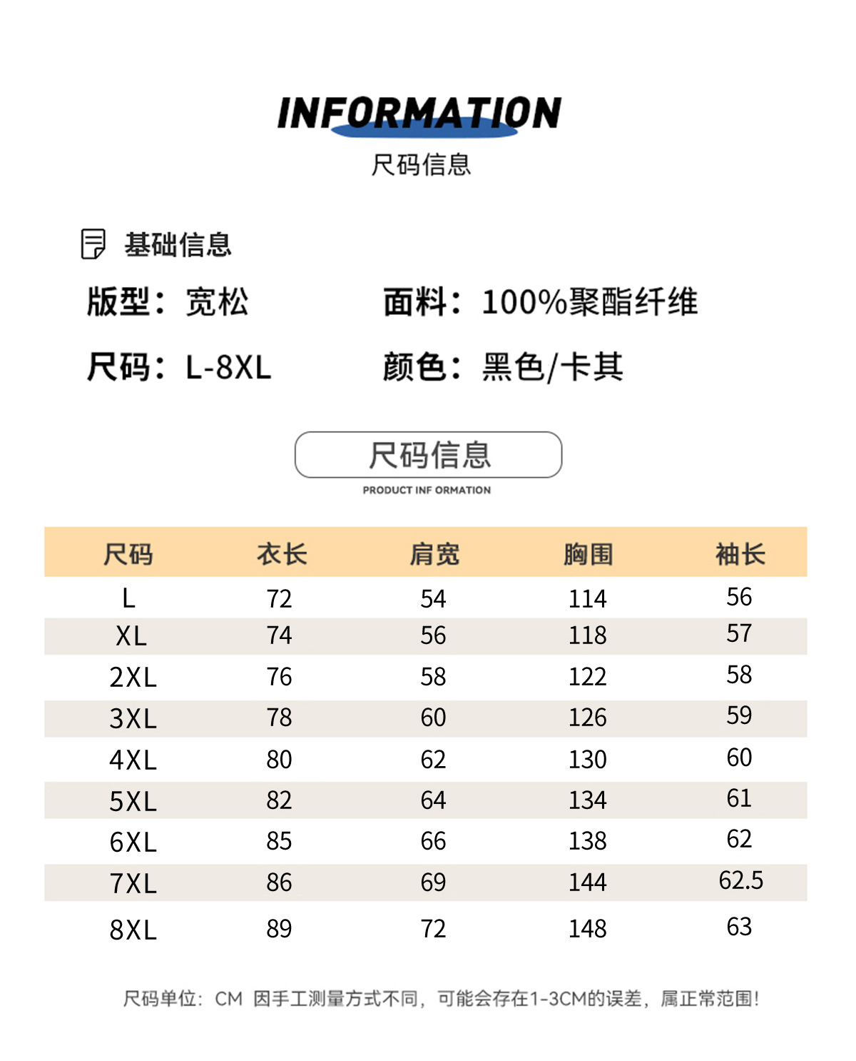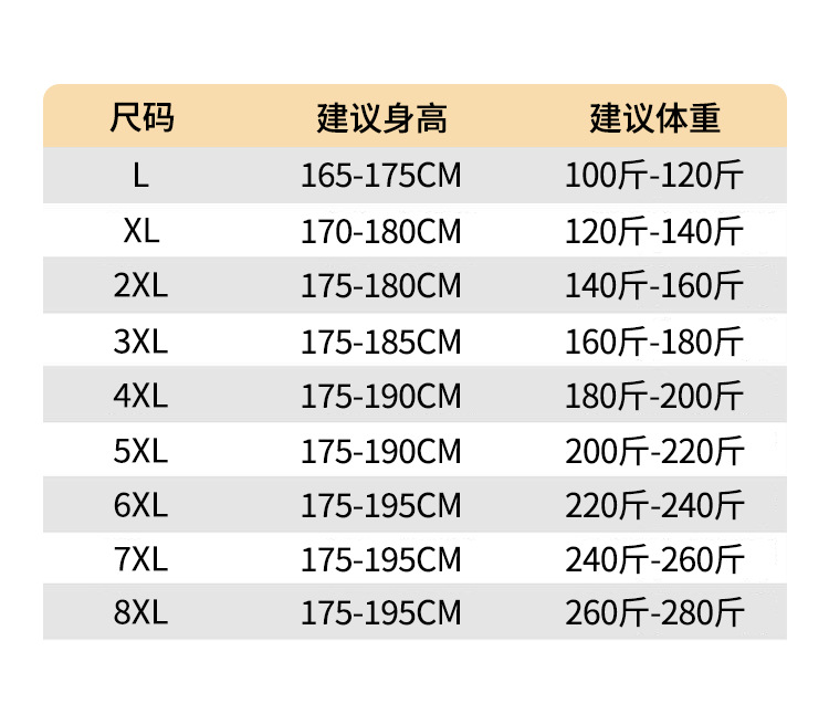 サイズ L,XL,2XL,3XL,4XL,5XL,6XL,7XL,8XL