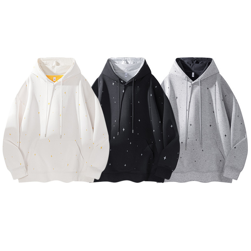 泼墨设计印花卫衣女男秋季新款连帽套头长袖上衣学院风情侣装