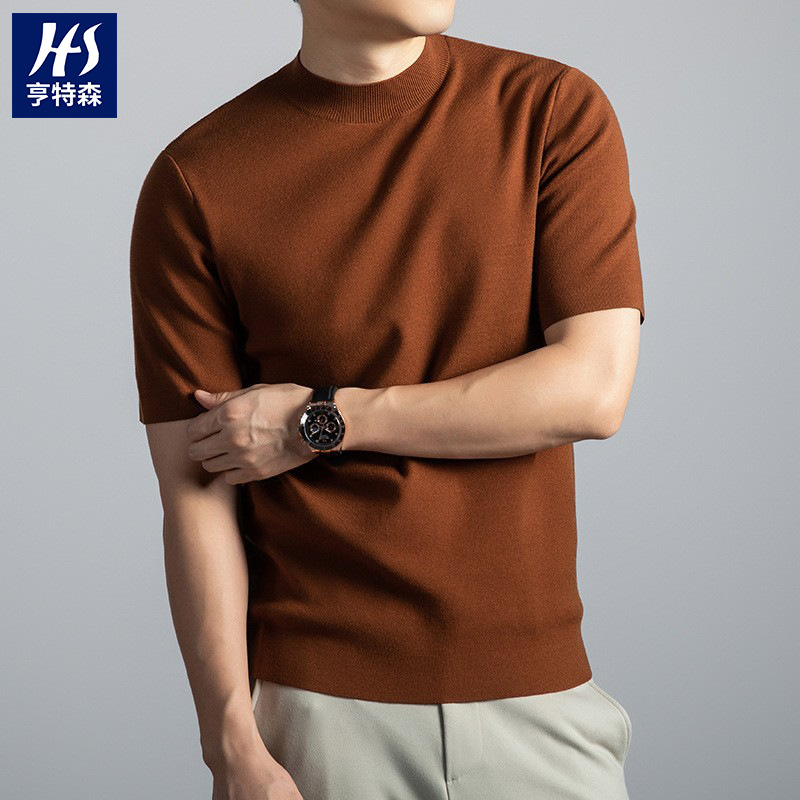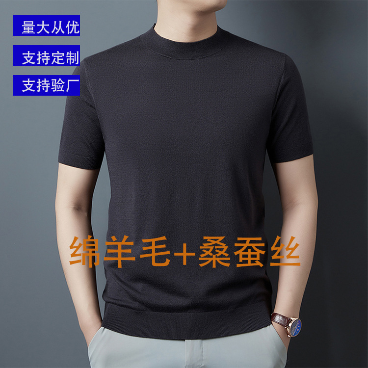 ライブブロードキャスト半袖セーターメンズオールシーズンハーフタートルネック無地トレンディ多用途カジュアルボトリングシャツTシャツ男性用