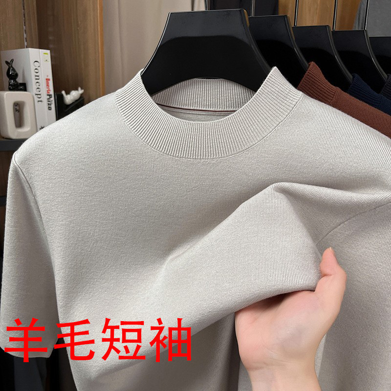 秋冬季新精纺羊毛衫男半高圆领短袖轻奢高级感青年休闲针织衫男装