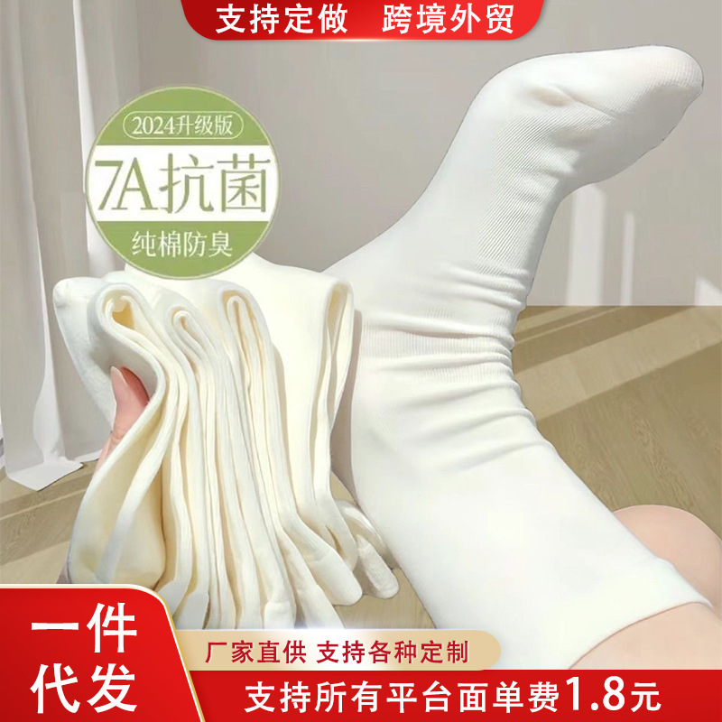 小紅書同項/抗菌無骨靴下月子日系学院風中筒靴下秋白色insスタック靴下