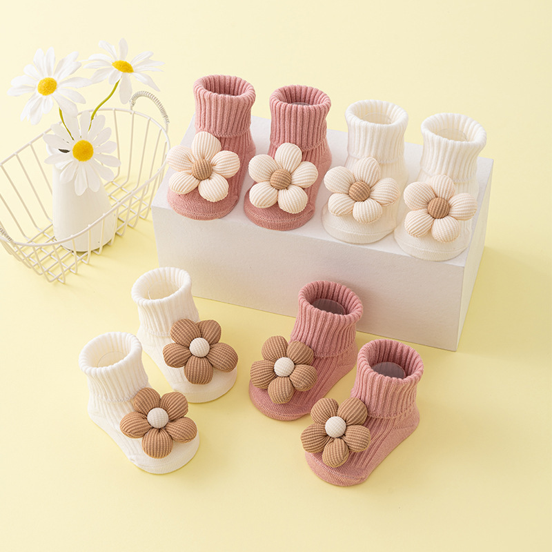 新入生の赤ちゃんの花の中の筒の滑り止めのゴムは靴下をつけます。