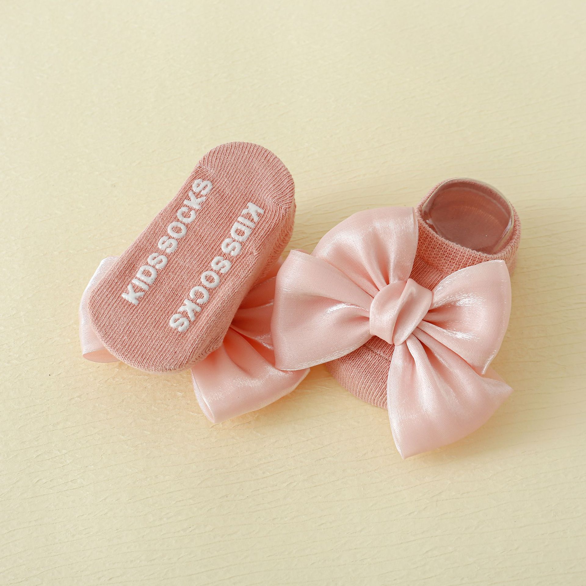 Ins赤ちゃん蝶結び学歩滑り止め床靴下子供漫画靴下無地ベビー靴下