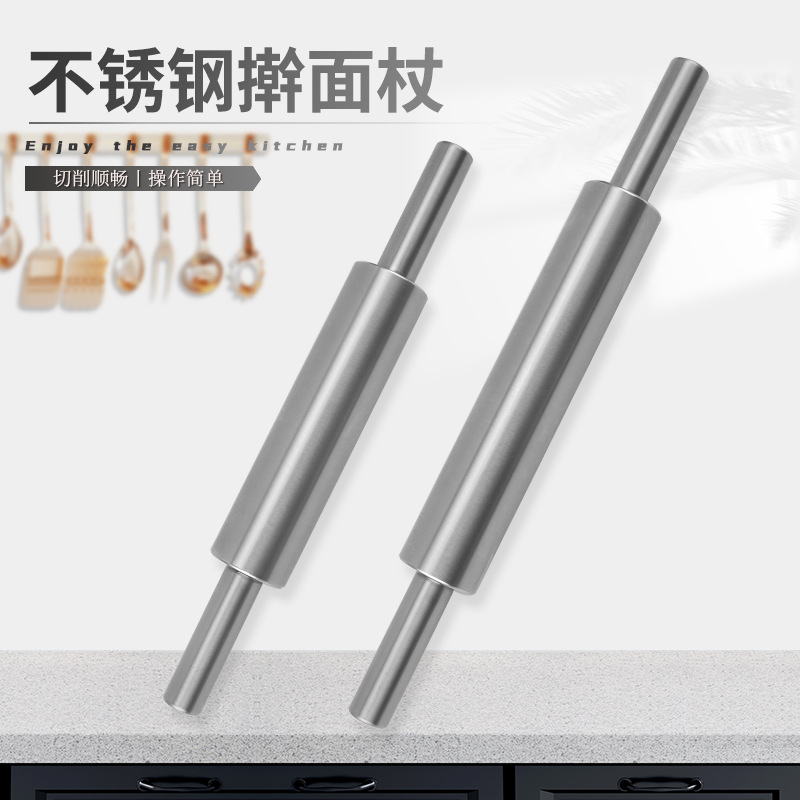 不锈钢滚轮擀面杖滚轴粗烘焙工具家用赶棍棒擀饺子面条皮 擀面杖