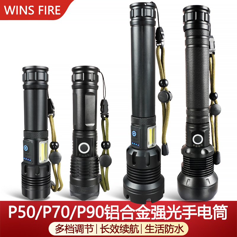 クロスボーダー強光懐中電灯USB充電量表示家庭用屋外携帯夜釣りキャンプ強懐中電灯
