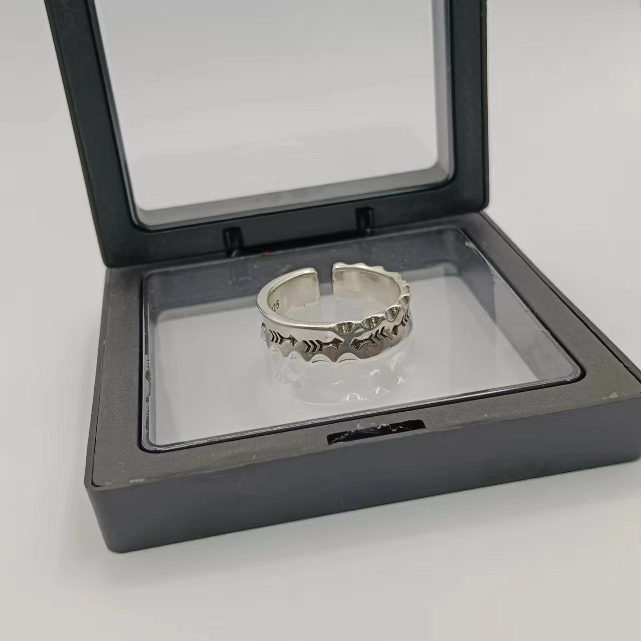 艺尚 泰银戒指 复古做旧潮人个性百搭朋克泰银十字开口指环男女戒