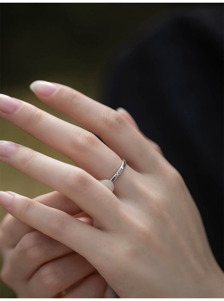 芸尚純手彫り桜s925泰銀指輪女性レトロ個性ins小衆カップル開口アクセサリー