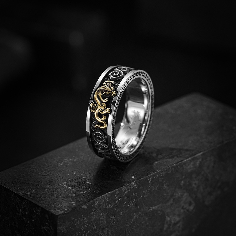 芸尚s925泰銀ファッションファッション唐草紋男金開口古藤紋覇気潮流人差指指輪尾戒