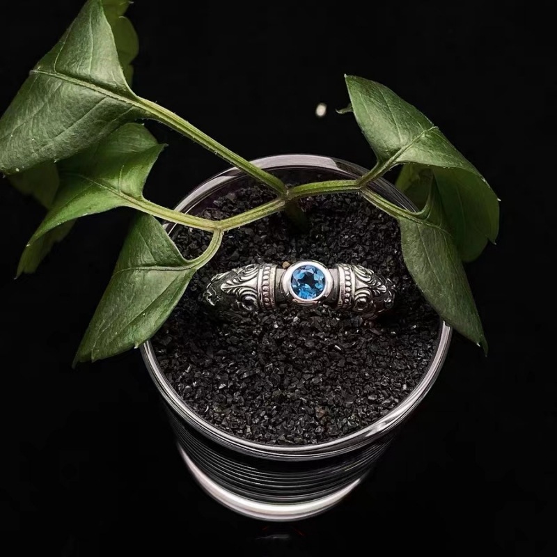 芸尚s925泰銀永遠指輪ブルートパーズペアリングレトロ百合ファッションクール個性オープンリング