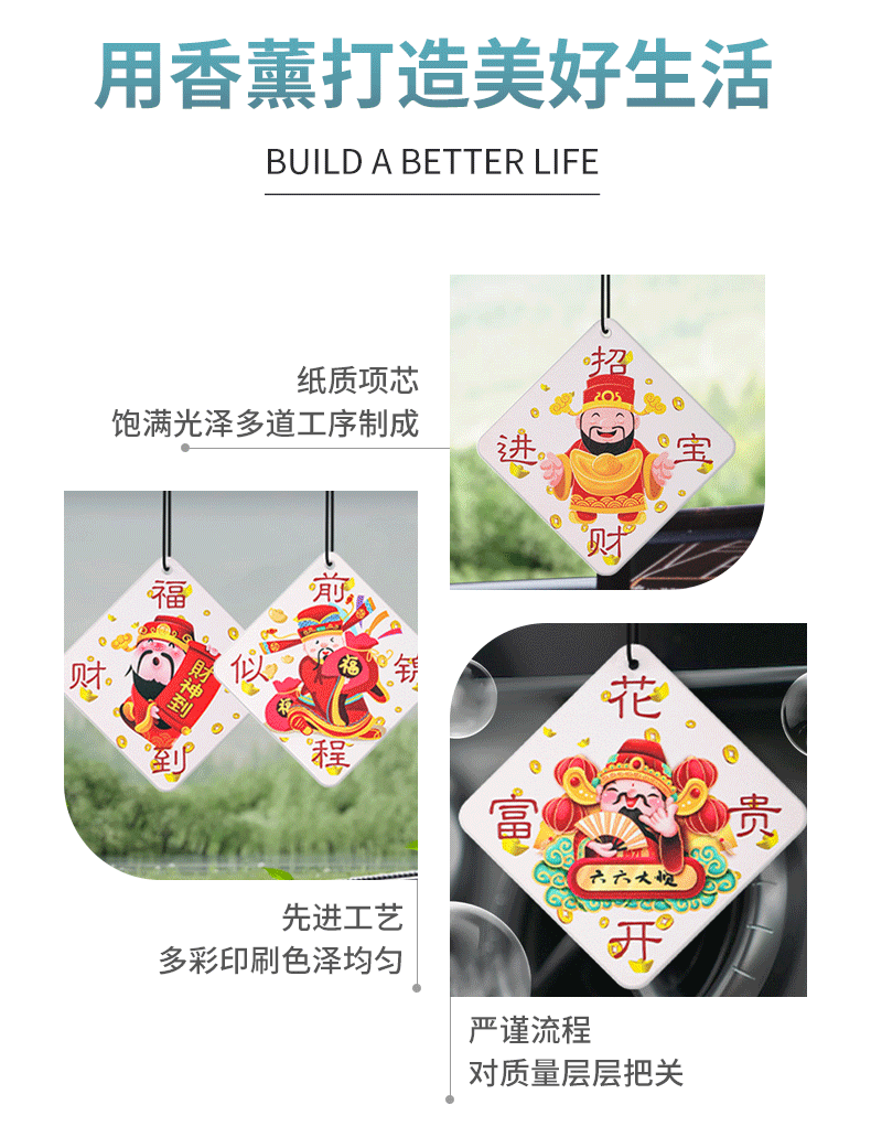 车载财神香薰挂件车香片持久淡香汽车香水香薰汽车内饰香薰片来财