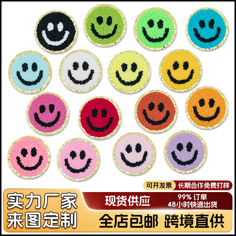 カスタム文字布ステッカー、粘着性のあるタオル刺繍、金縁シェニール素材、刺繍パッチ、越境専用刺繍ステッカー