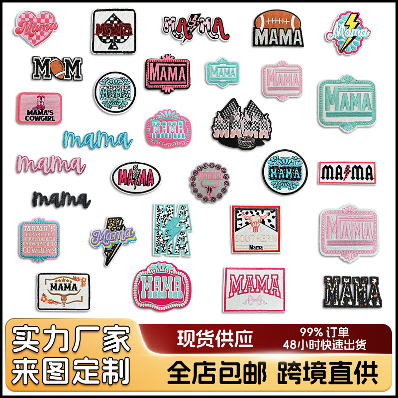 跨境粉色系列刺绣布贴MAMA补丁贴服装辅料箱包帽子手工DIY贴布绣