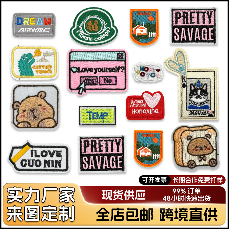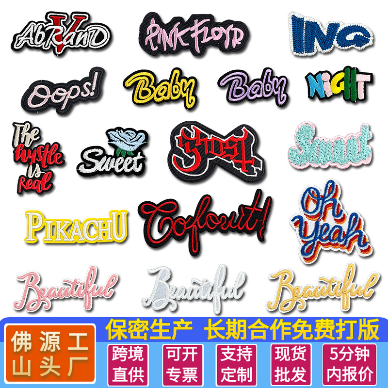 パーソナライズされた英語刺繍コンピュータ刺繍スタンプ衣類アクセサリー衣類装飾トレンディなブランドパッチパッチ
