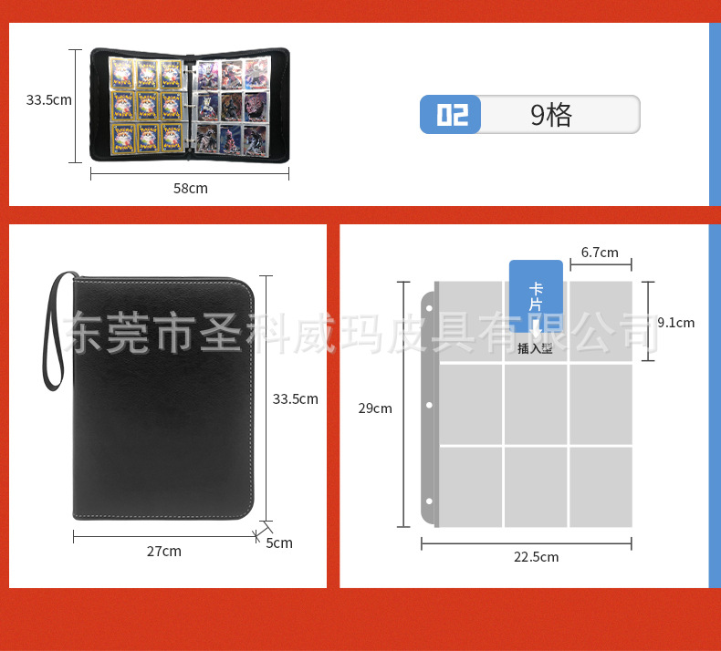 4格9格PU宝可夢カード冊皮質防水ゲームカードクリップサッカー野球カードジッパーゲームカードバッグ