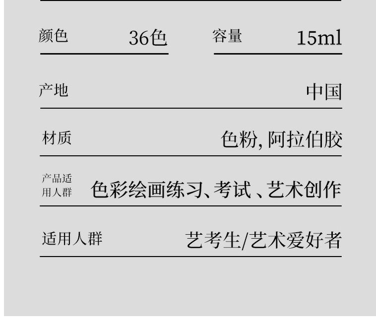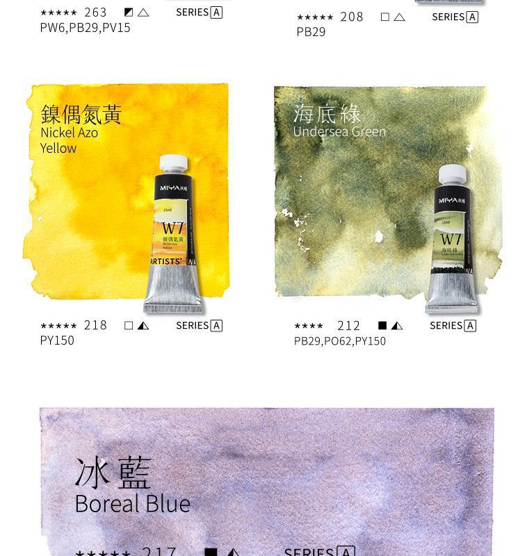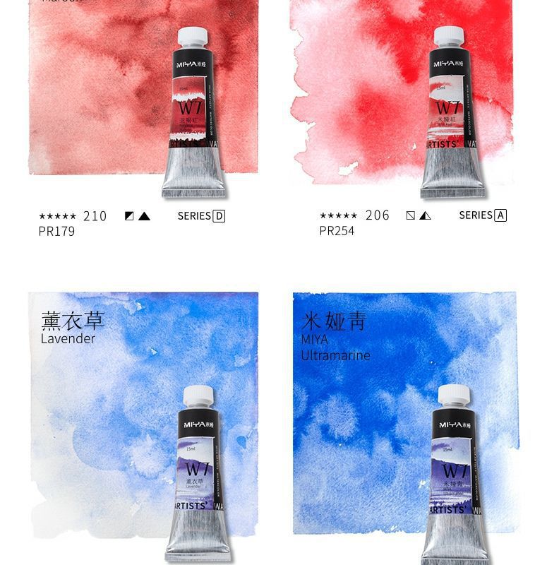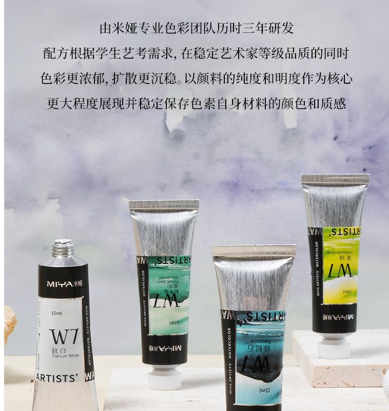ミア水彩絵の具w 7管装水彩36色15ml単本自選美術学生芸考推薦水彩