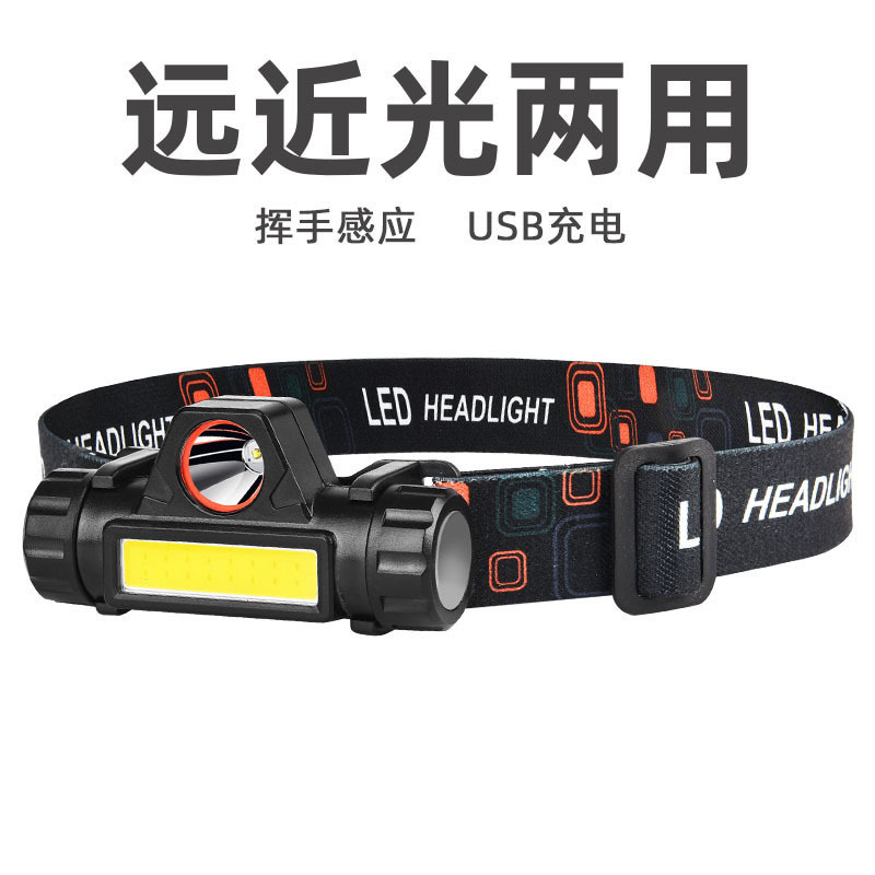 クロスボーダーヘッドライトミニled强い光充电ヘッドマウント式懐中电灯マグネット付きCOBダブル光源屋外钓りセンサー