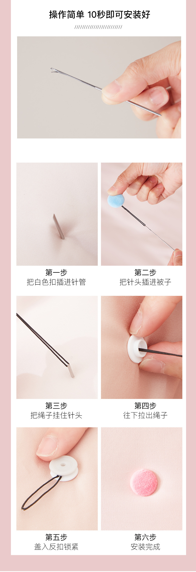 购买须知:被子扣需要搭配辅助勾针筒才能使用,请勿忘记搭配购买勾针筒