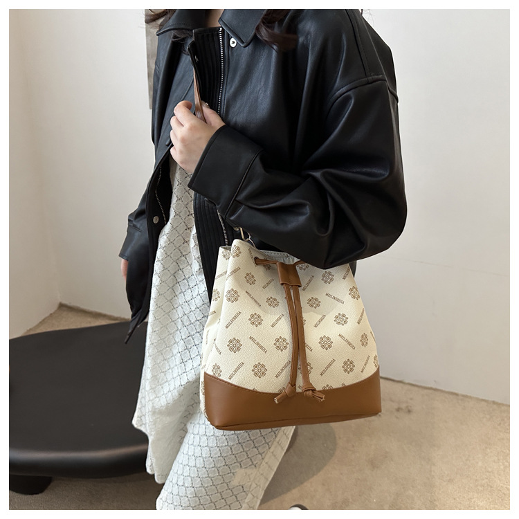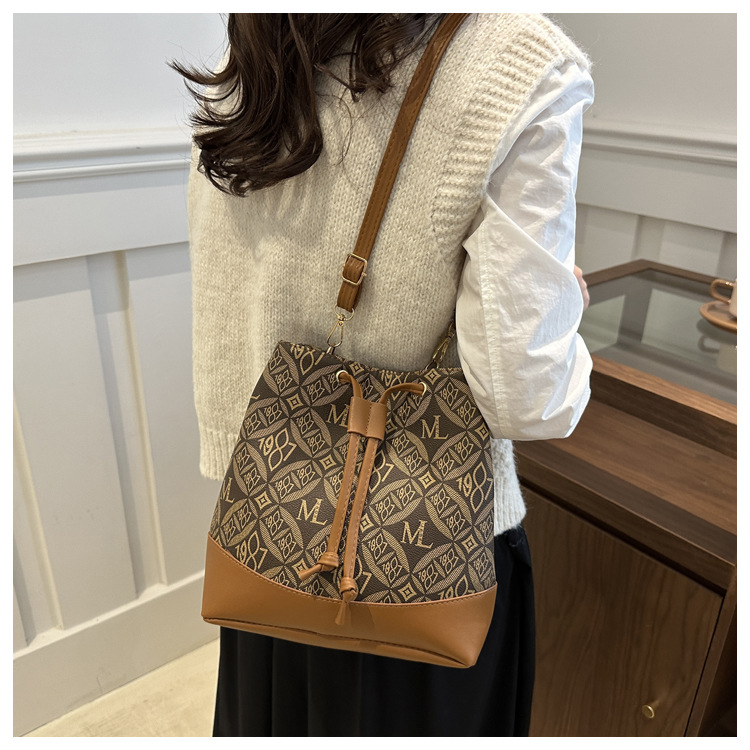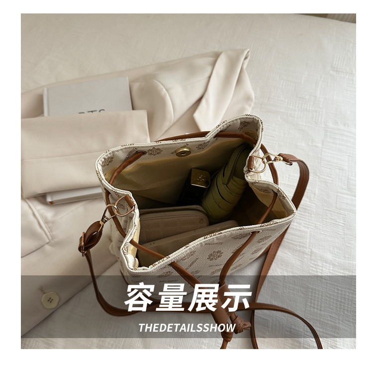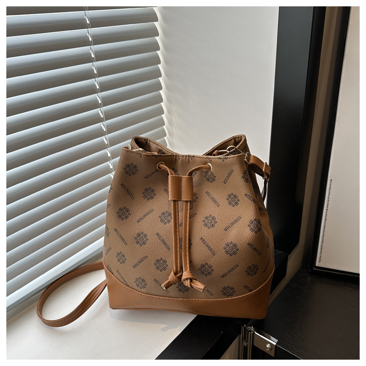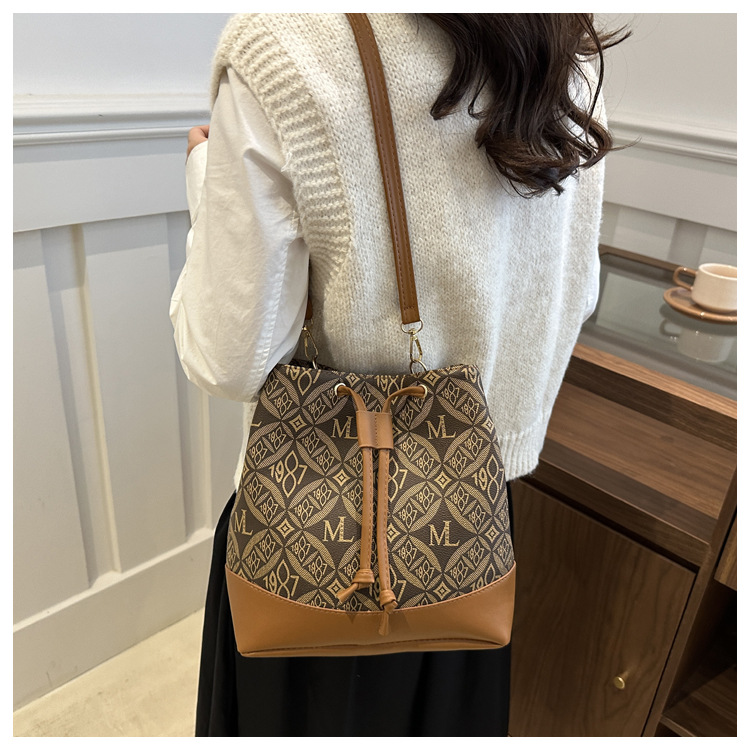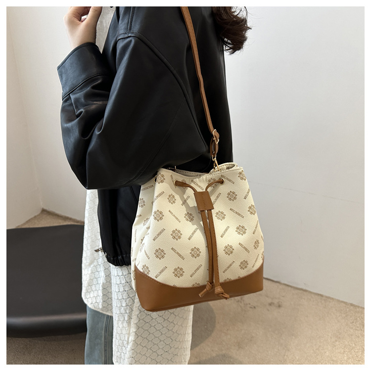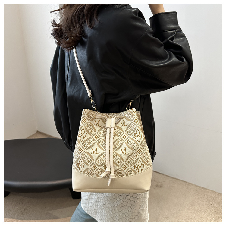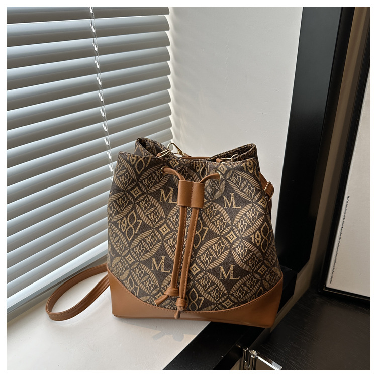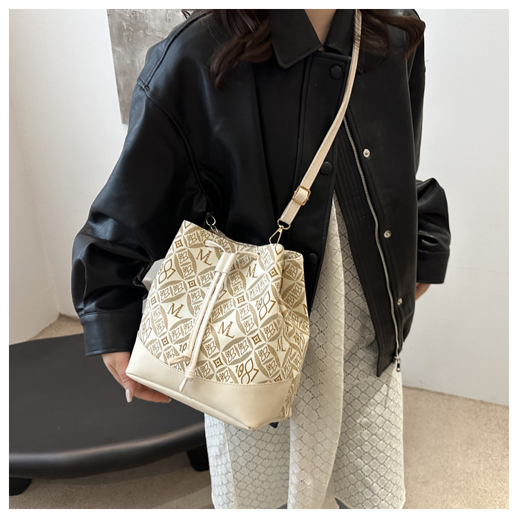 ファッションプリントのアルファベットの新型の2024韓国版の大容量のレトロなカジュアルな大容量の肩の斜め掛けのバケツの女性のカバン