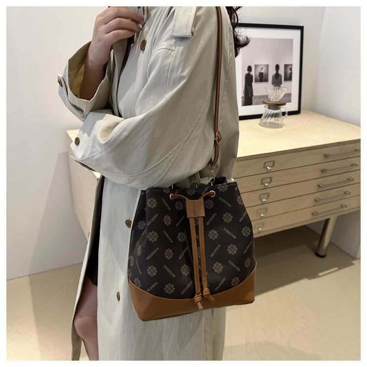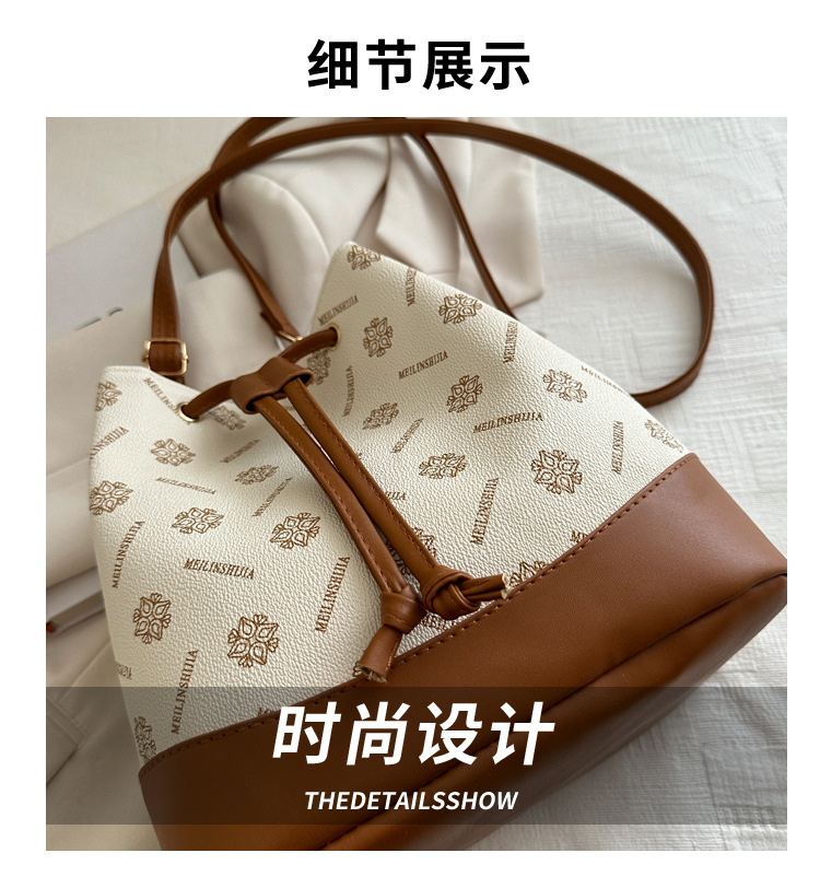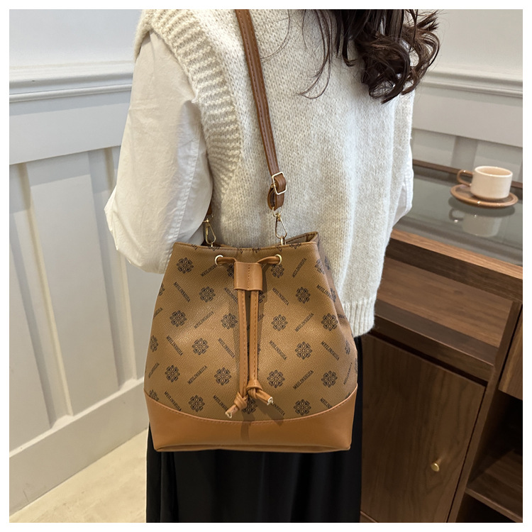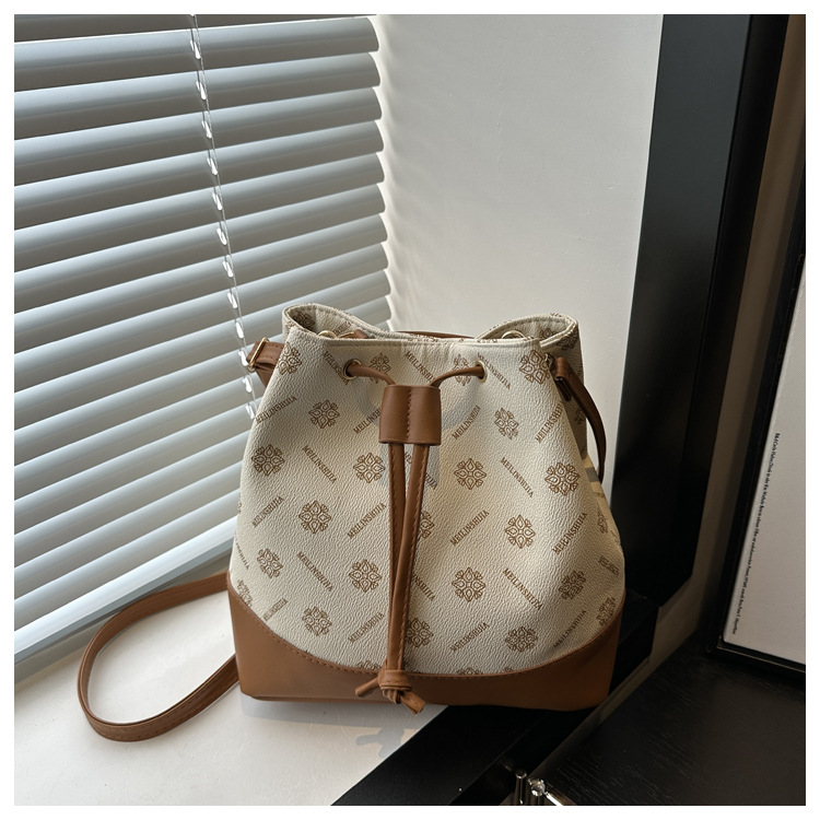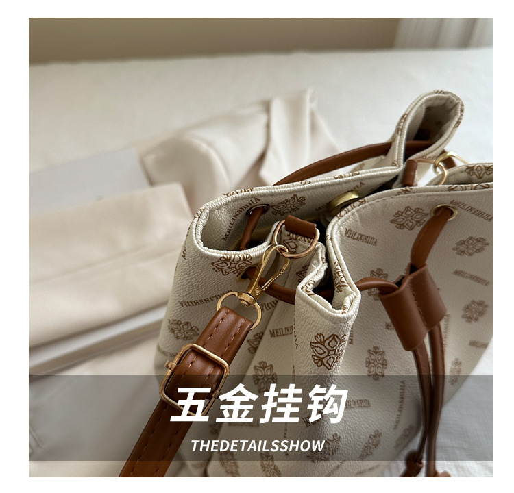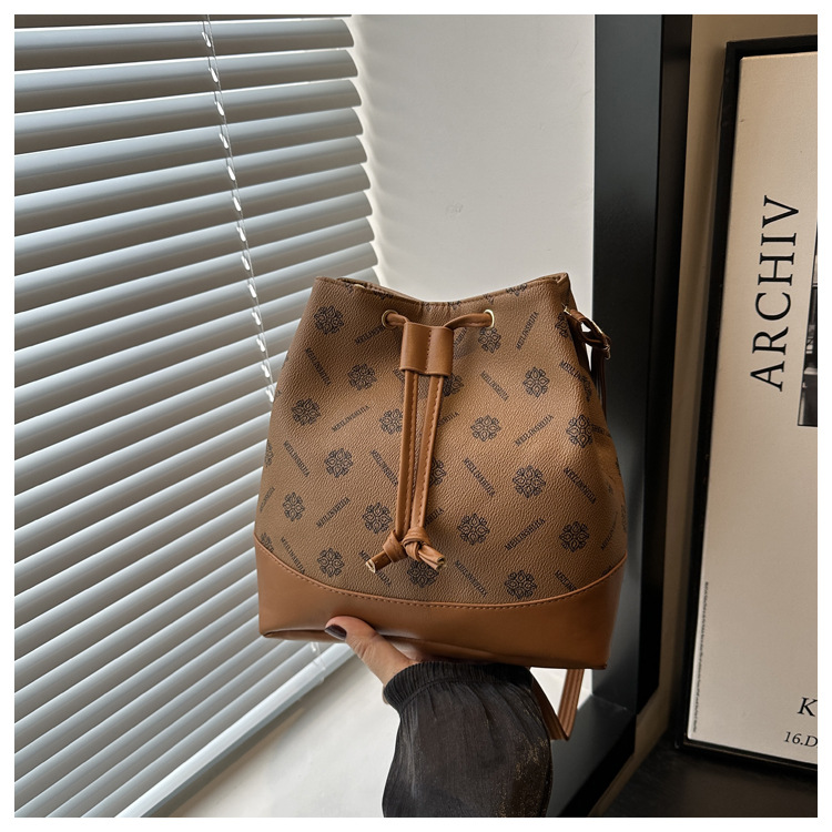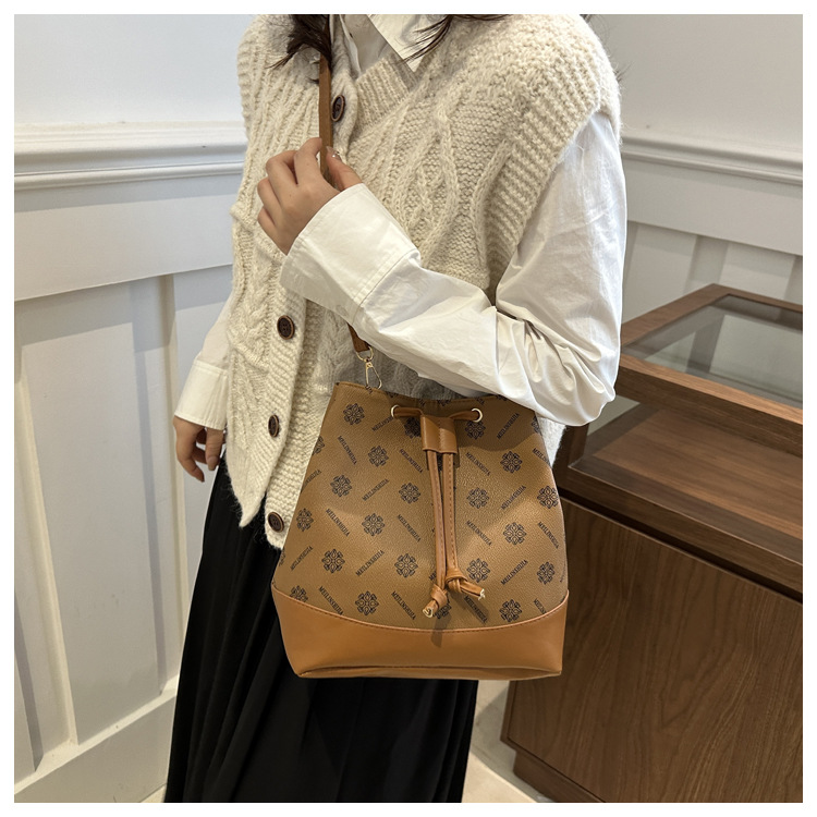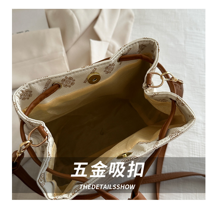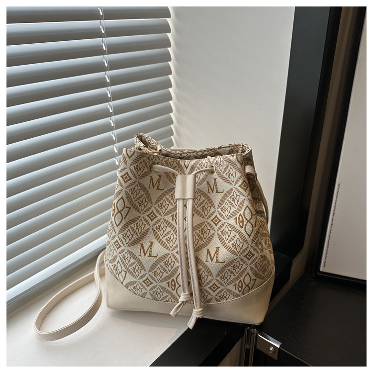 ファッションプリントのアルファベットの新型の2024韓国版の大容量のレトロなカジュアルな大容量の肩の斜め掛けのバケツの女性のカバン