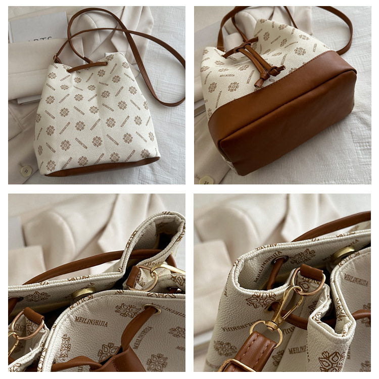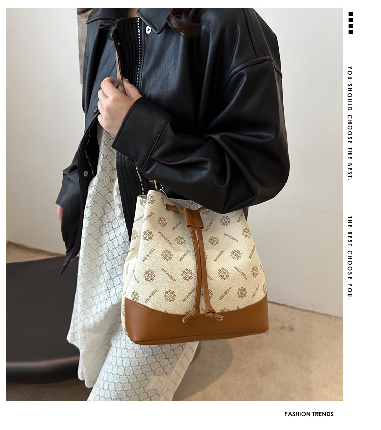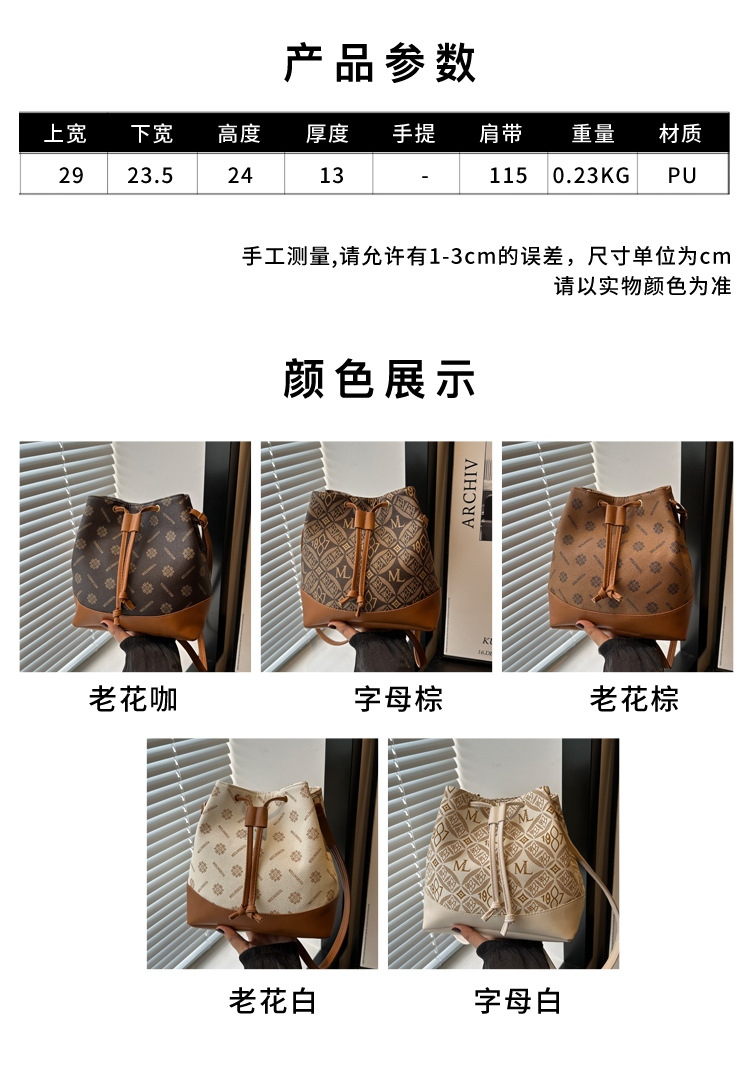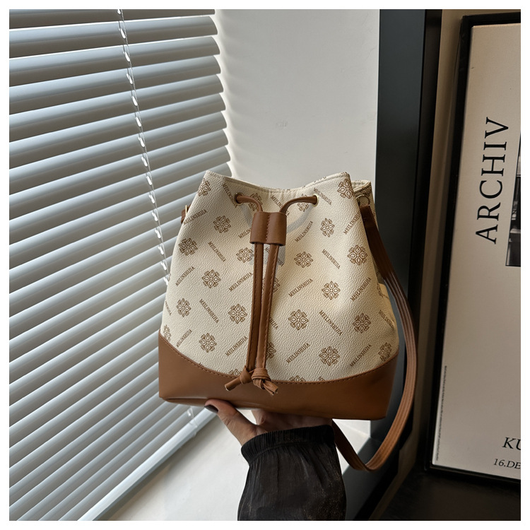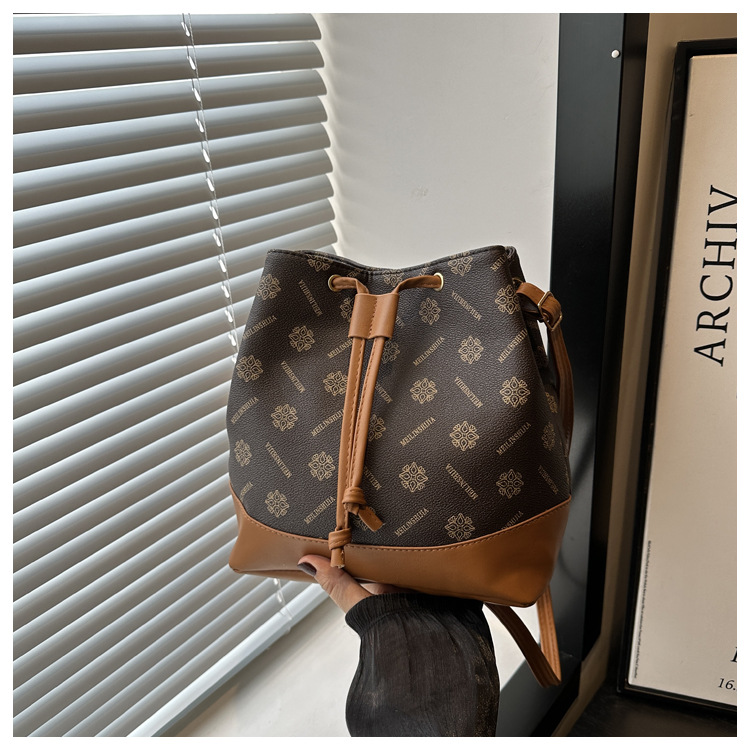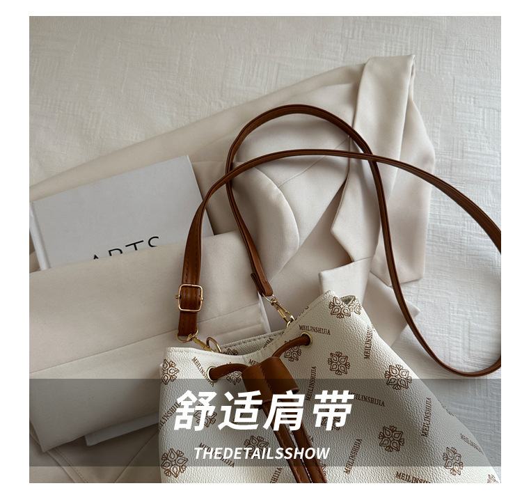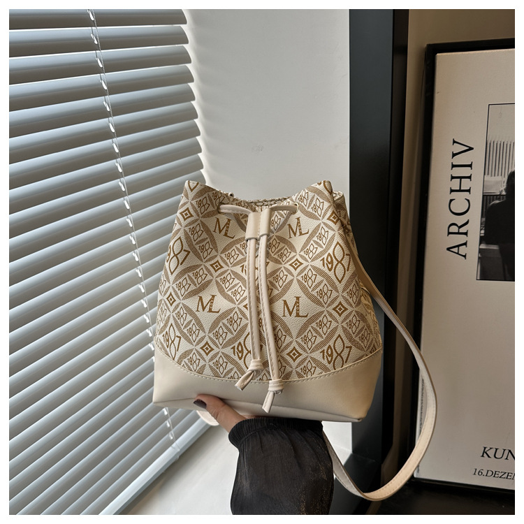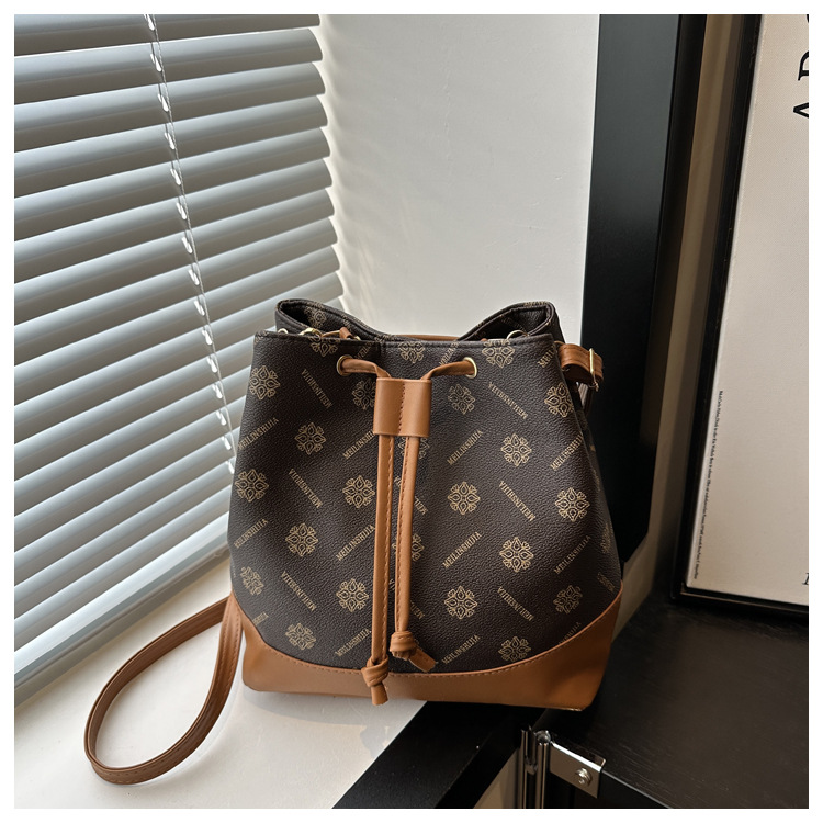 ファッションプリントのアルファベットの新型の2024韓国版の大容量のレトロなカジュアルな大容量の肩の斜め掛けのバケツの女性のカバン
